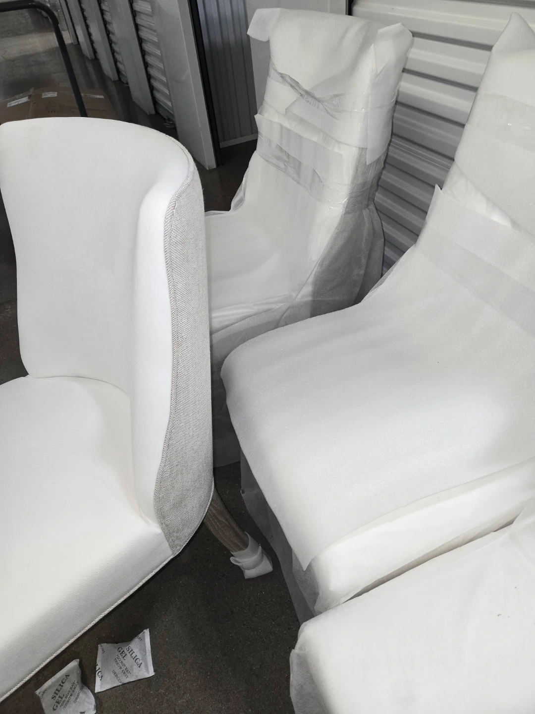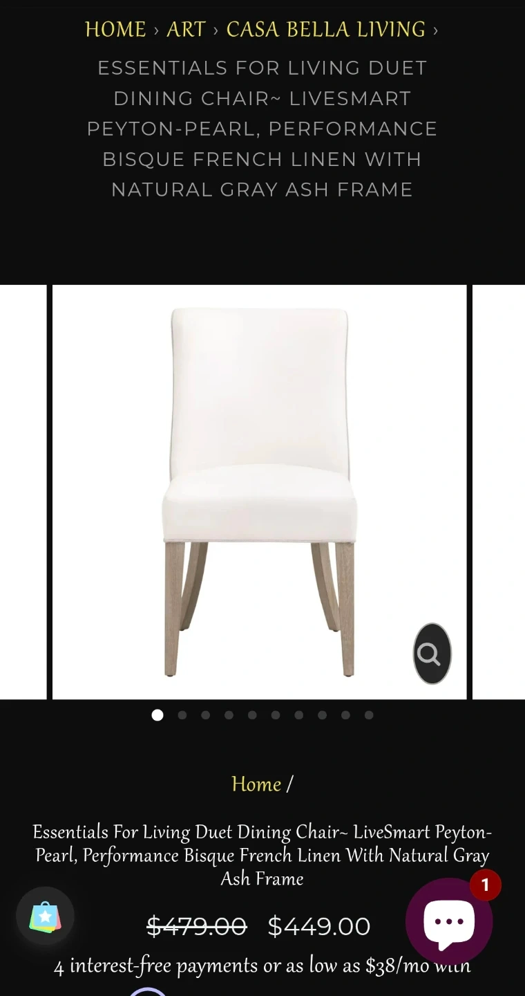 These Casa Bella Decor Essentials For Living Duet Dining Chairs are brand new and ready for your home! They have a two-tone design, with high-performance fabric on the front and a stain-resistant linen blend on the back. The dimensions are W:19.5" x D:26.5" x H:36.5". The frame is made of solid ash wood with 98% polyester/2% nylon fabric and 50% linen/50% polyester fabric and foam