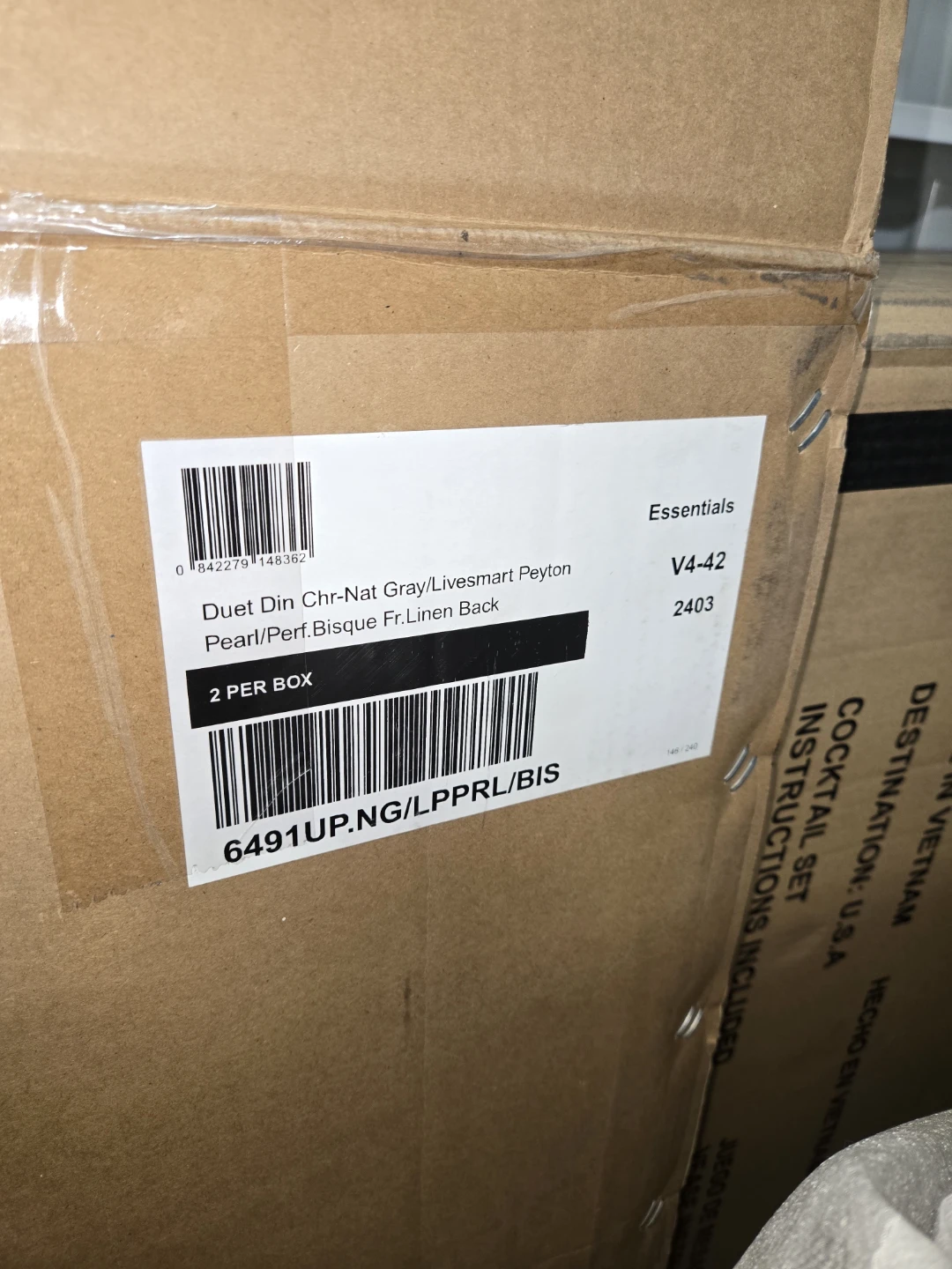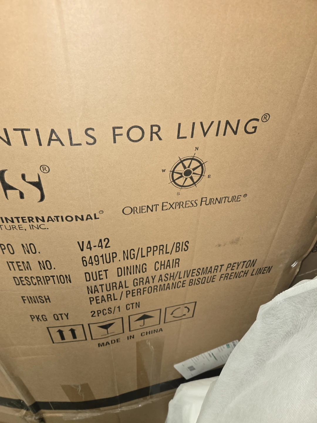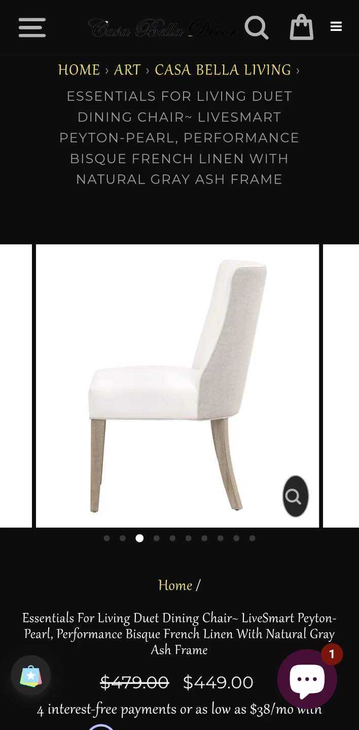 These Casa Bella Decor Essentials For Living Duet Dining Chairs are brand new and ready for your home! They have a two-tone design, with high-performance fabric on the front and a stain-resistant linen blend on the back. The dimensions are W:19.5" x D:26.5" x H:36.5". The frame is made of solid ash wood with 98% polyester/2% nylon fabric and 50% linen/50% polyester fabric and foam