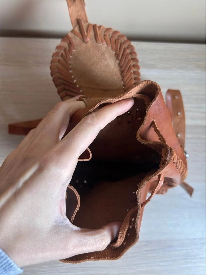 In terms of colouring, it’s a little bit lighter in real life. Genuine leather. Never been used so the leather is a bit stiff.