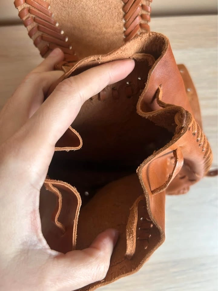 Vintage brown leather whipstitch bag.