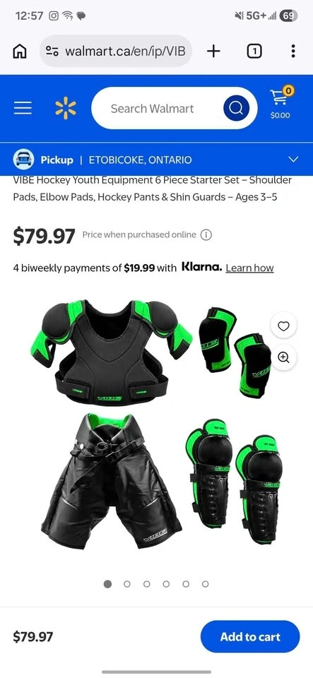 Brand New. 4 available for $40 each. Retails $80 each regularly. Comes with shoulder pads, hockey pants, elbow pads & shin guards. Located in Derry & McLaughlin.