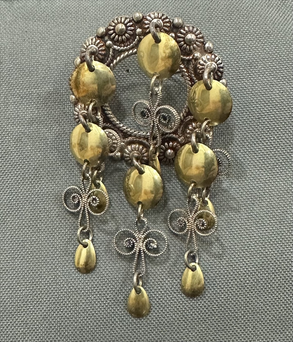 Giving away a vintage brooch pin featuring a unique design with gold and silver tones. Never been used, in great condition. It would make a lovely addition to any collection!