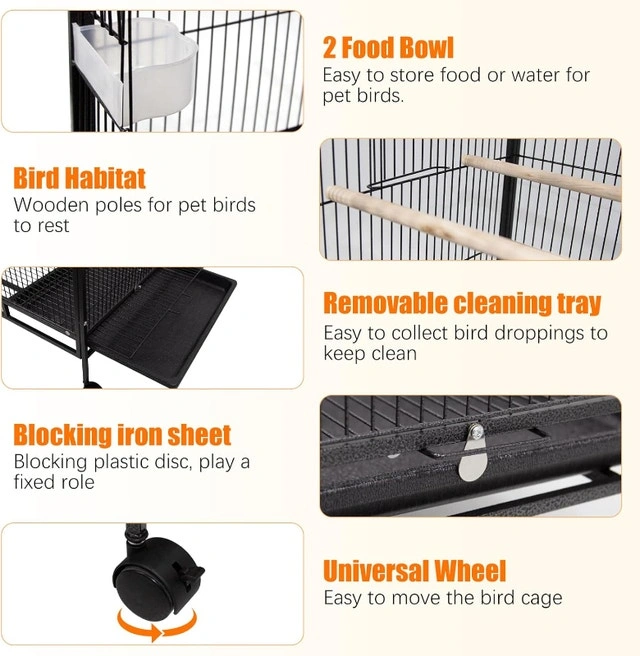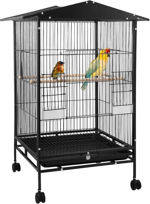RUN.SE 30-Inch Black Wrought Iron Birdcage Standing Flight Bird