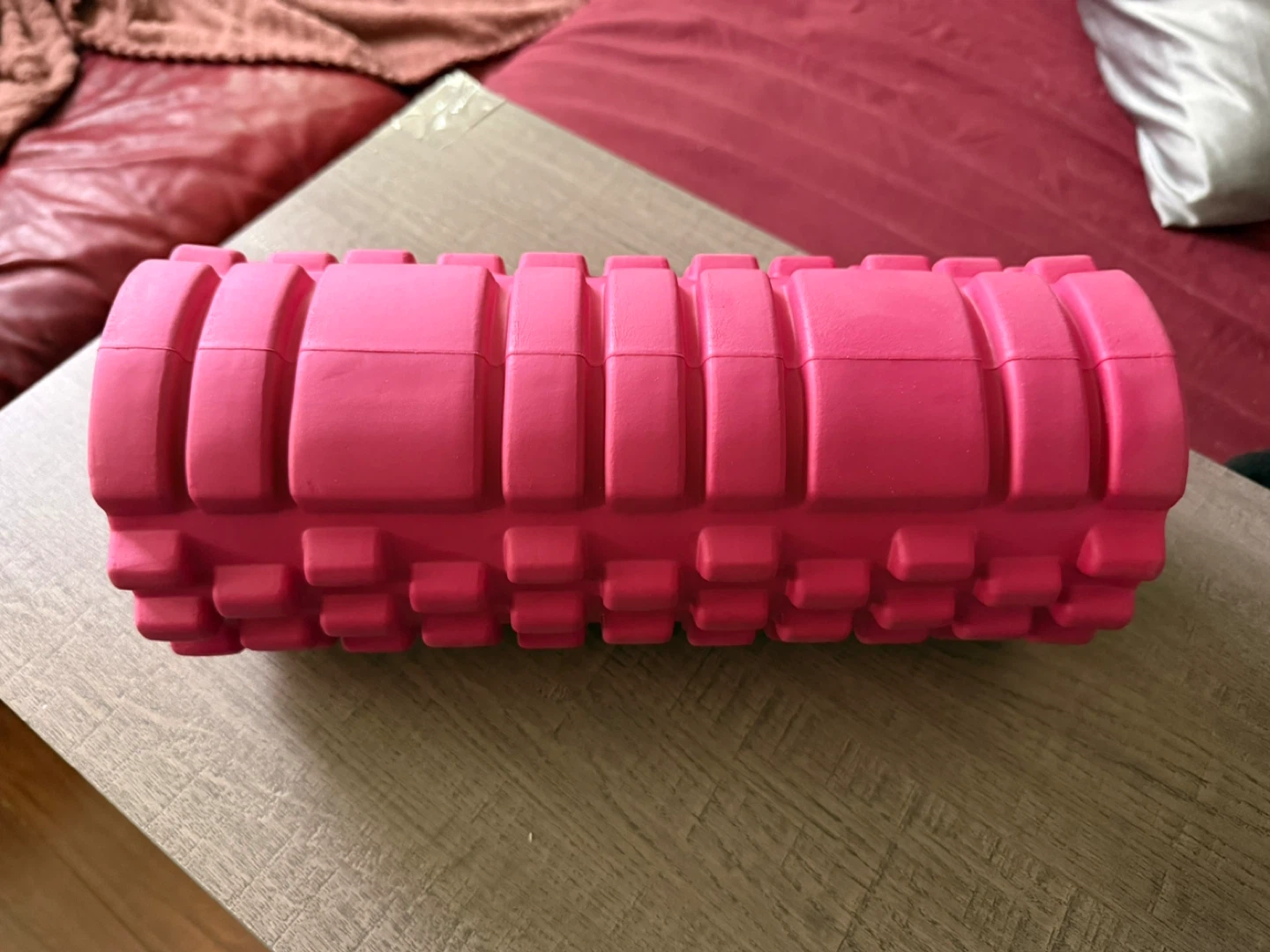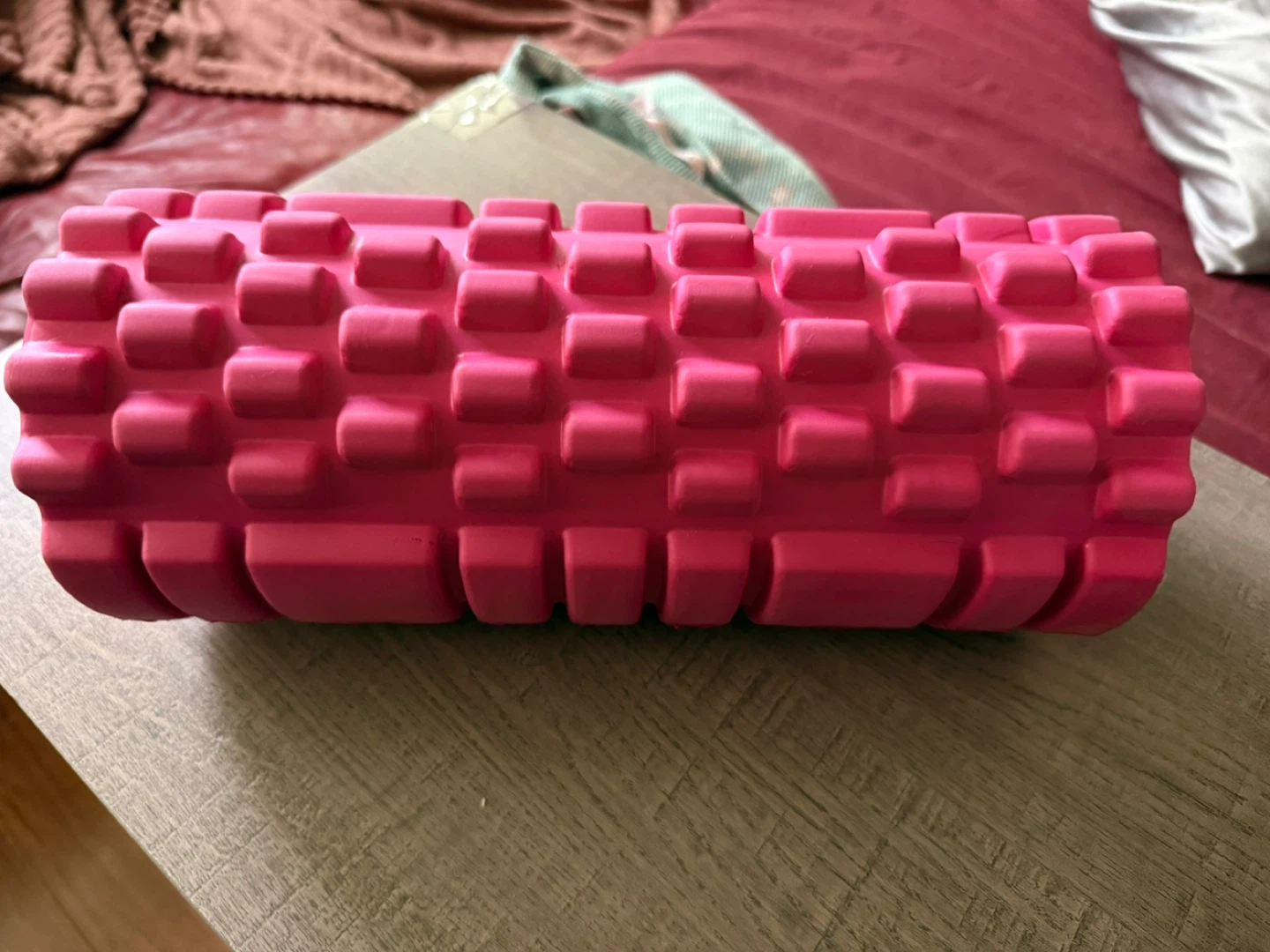 - This is a textured foam roller in a bright pink colour.
