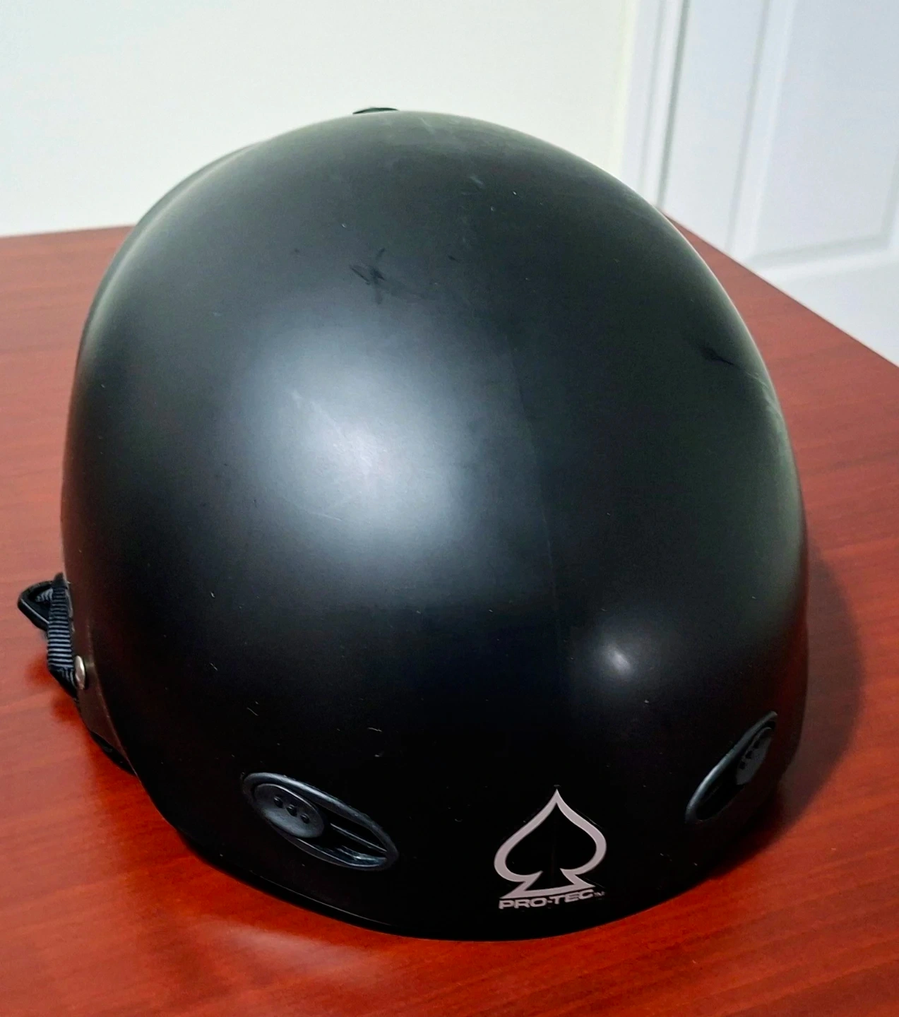 This is a PRO-TEC skate helmet in black. It has adjustable straps for a secure fit. Vented for comfort during use.