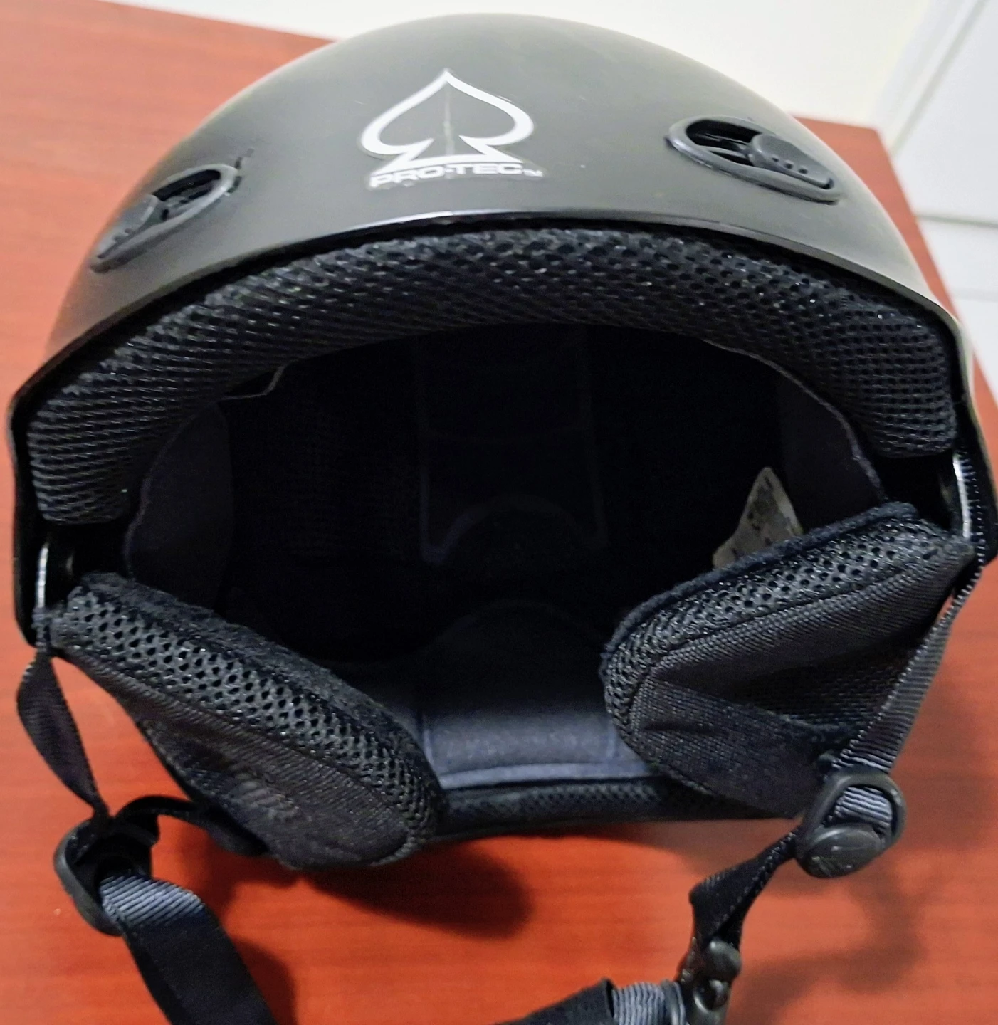 This is a PRO-TEC skate helmet in black. It has adjustable straps for a secure fit. Vented for comfort during use.