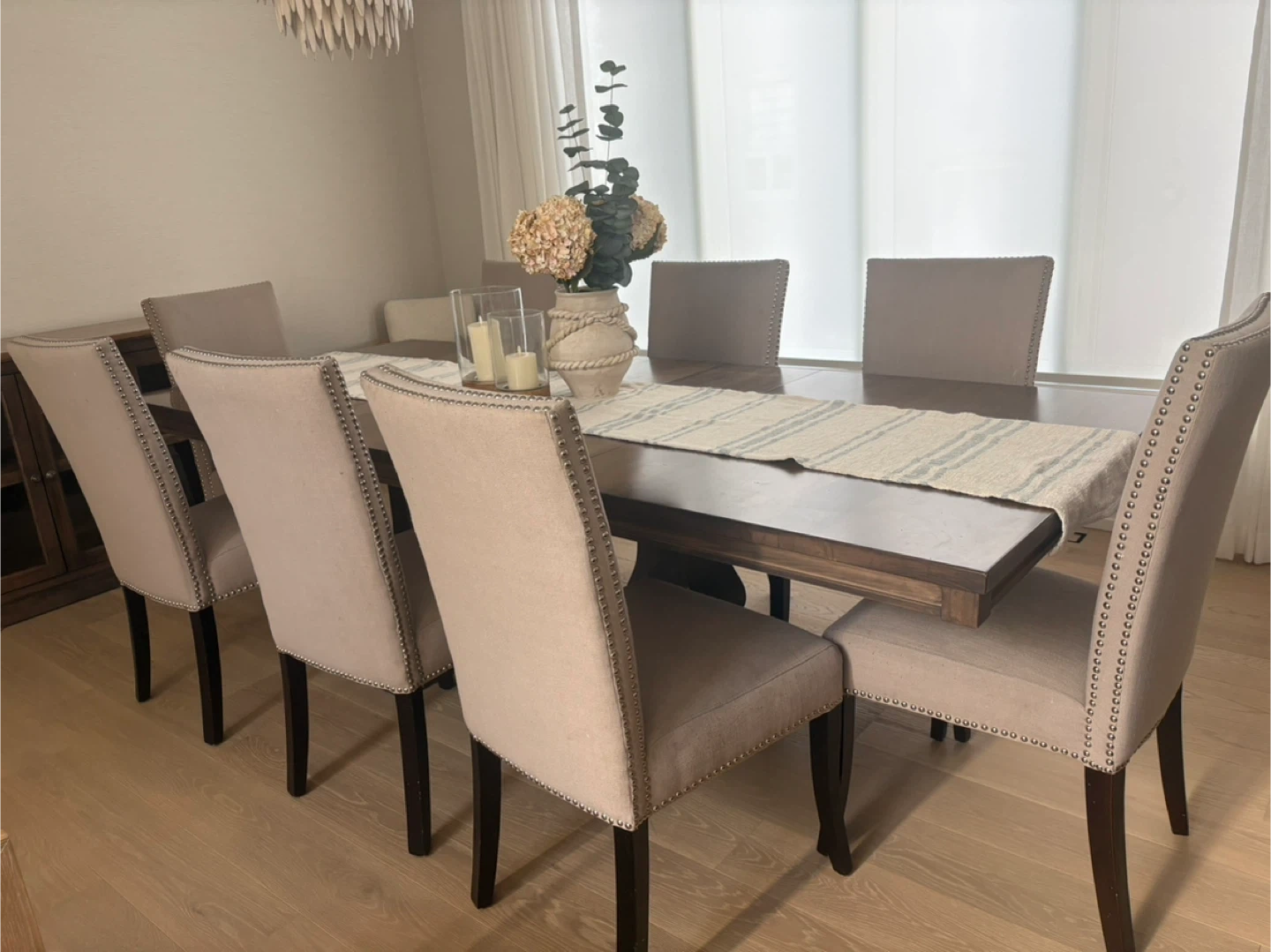 8 Solid Upholstered Dining Chairs – Grey Nailhead Trim