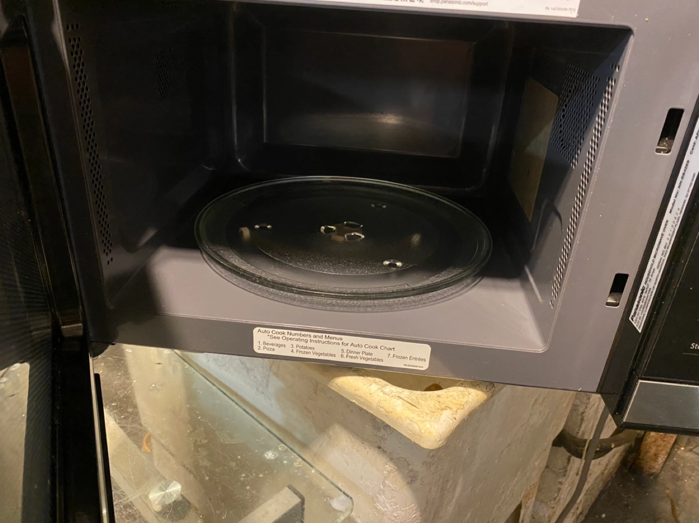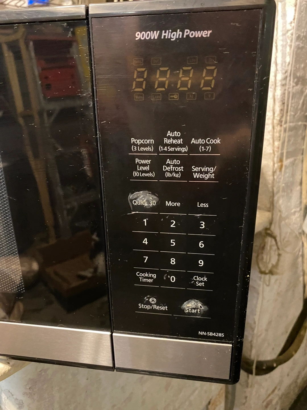 900W high power microwave. Auto cook, reheat, and defrost settings. Multiple power levels. Clean interior. Model NN-SN682S.