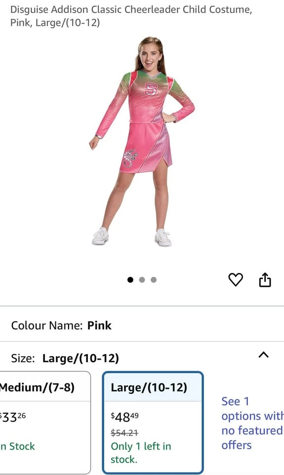 Disney Zombies Addison Seabrook Cheerleader Costume - Size 10-12. Some snags and pulls at the back of the top (see photo). Pick-up near St. Vital Park from non-smoking, 1 kitty home.