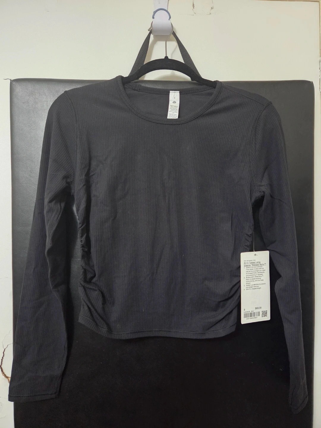 Selling a Lululemon All It Takes Long Sleeve Ribbed Nulu shirt in black. It's a size 8 (fits like a medium). This buttery-soft ribbed fabric is designed for forward folds, comfortable cool-downs, and everything in between! The original price was $68.00