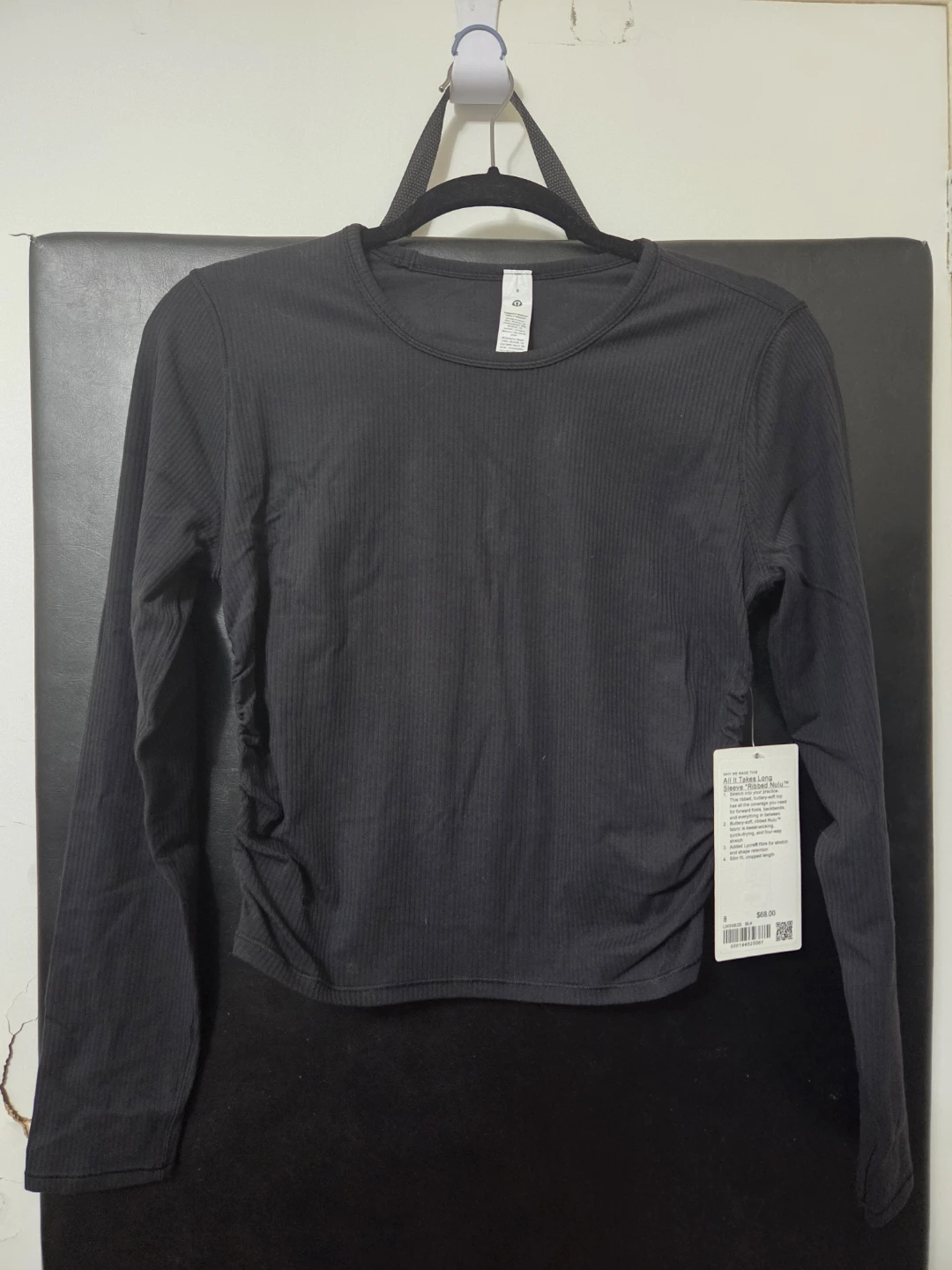 Selling a Lululemon All It Takes Long Sleeve Ribbed Nulu shirt in black. It's a size 8 (fits like a medium). This buttery-soft ribbed fabric is designed for forward folds, comfortable cool-downs, and everything in between! The original price was $68.00