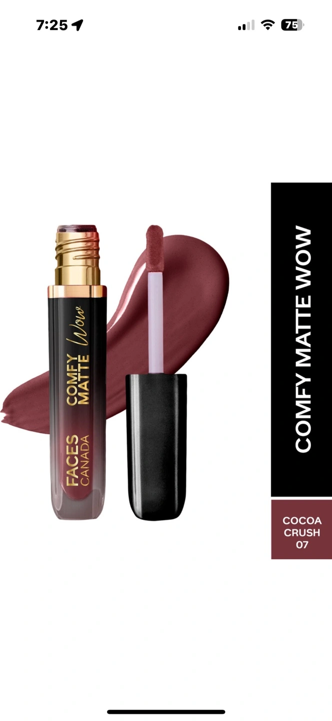 New FACES Canada Comfy Matte Wow lip cream. Shade Cocoa Crush 07. Matte finish. Long-lasting wear.