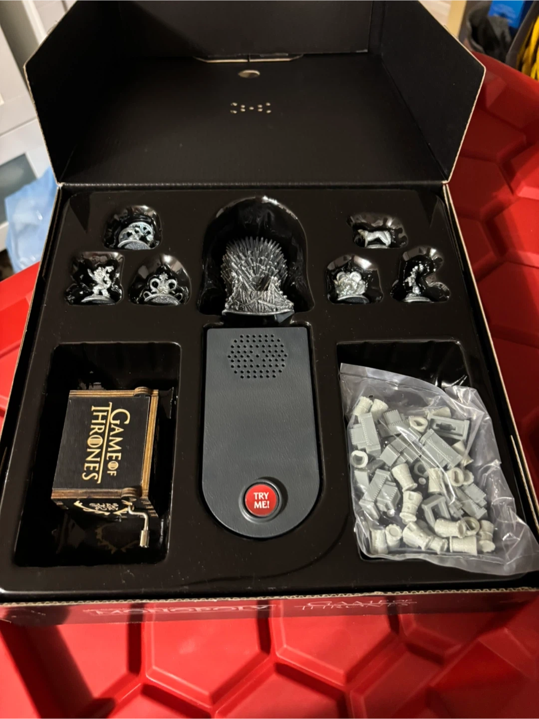 This is the Monopoly Game of Thrones Edition board game. It includes all the pieces shown in the images. It's designed for 2-6 players. This game is great for fans of the show looking for a new way to play.