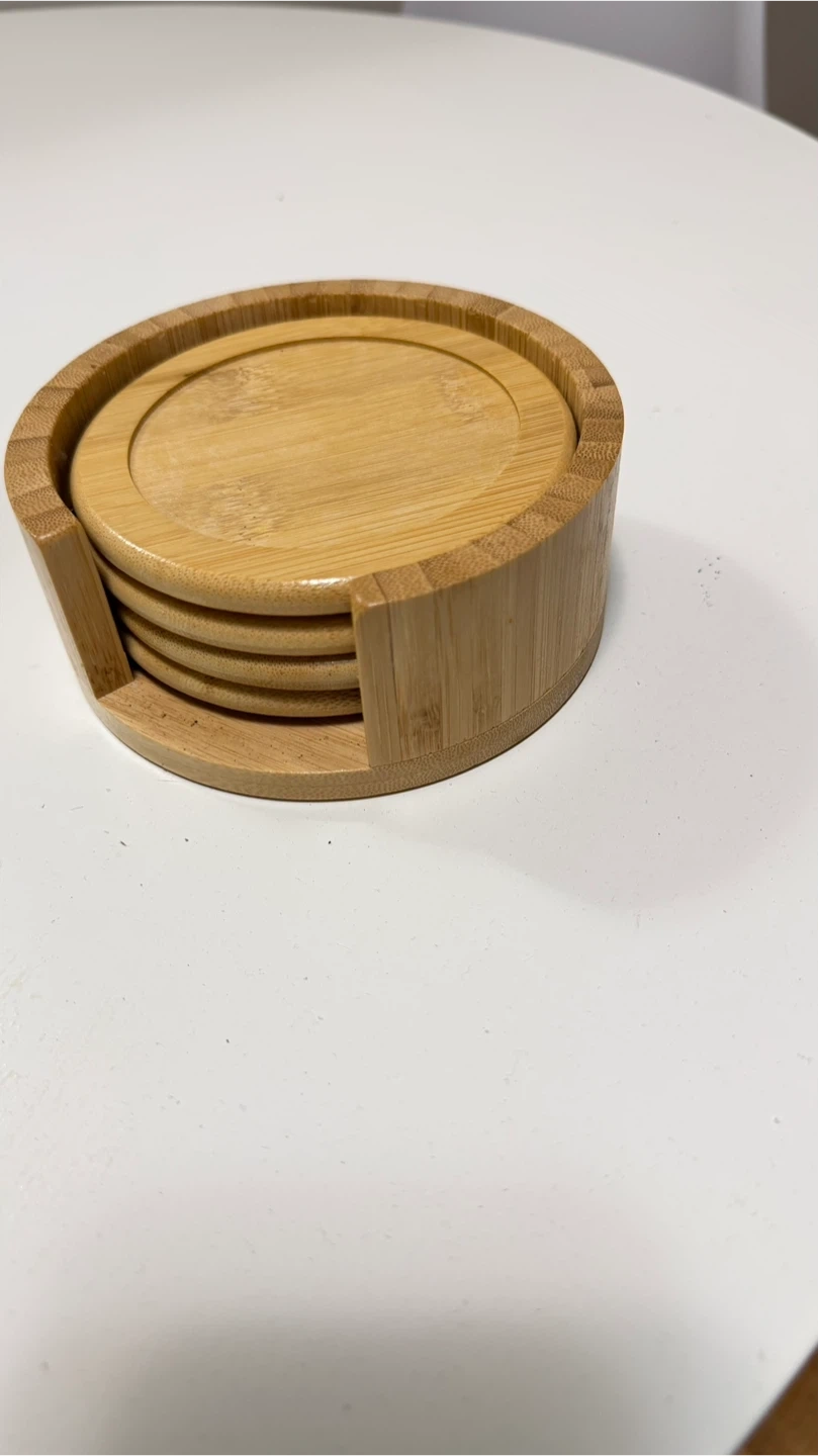 I'm selling a set of bamboo coasters and a collection of kitchen utensils. They're both in great shape and ready for a new kitchen!