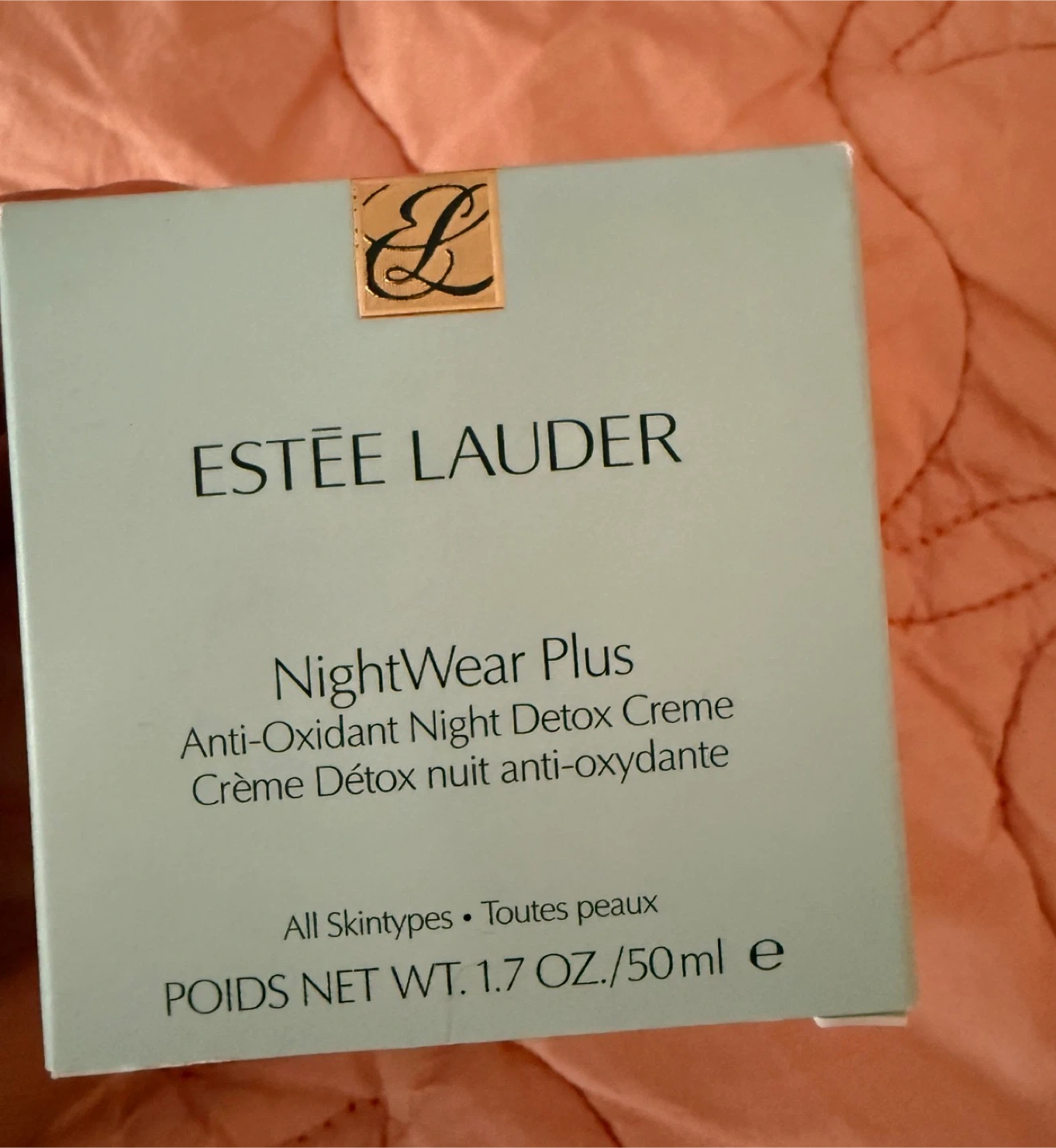 This is an Estée Lauder NightWear Plus Anti-Oxidant Night Detox Creme. It's suitable for all skintypes. The net weight is 1.7 oz/50ml.