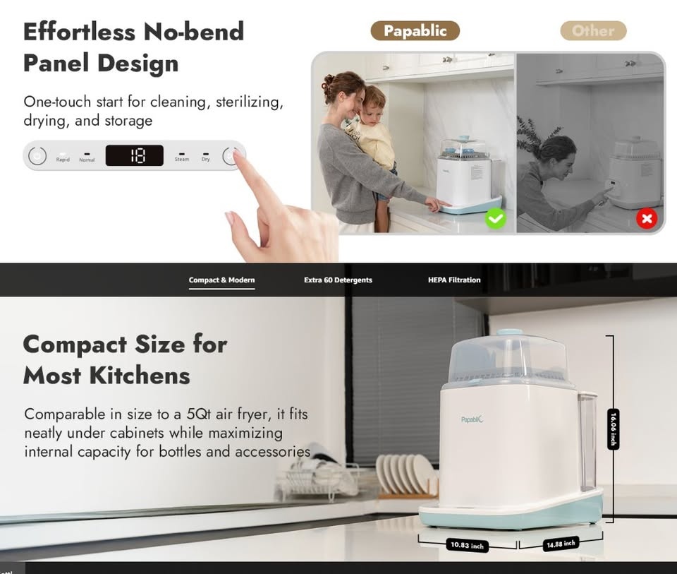 New Papablic Baby Bottle Washer Sterilizer Dryer 4-in-1