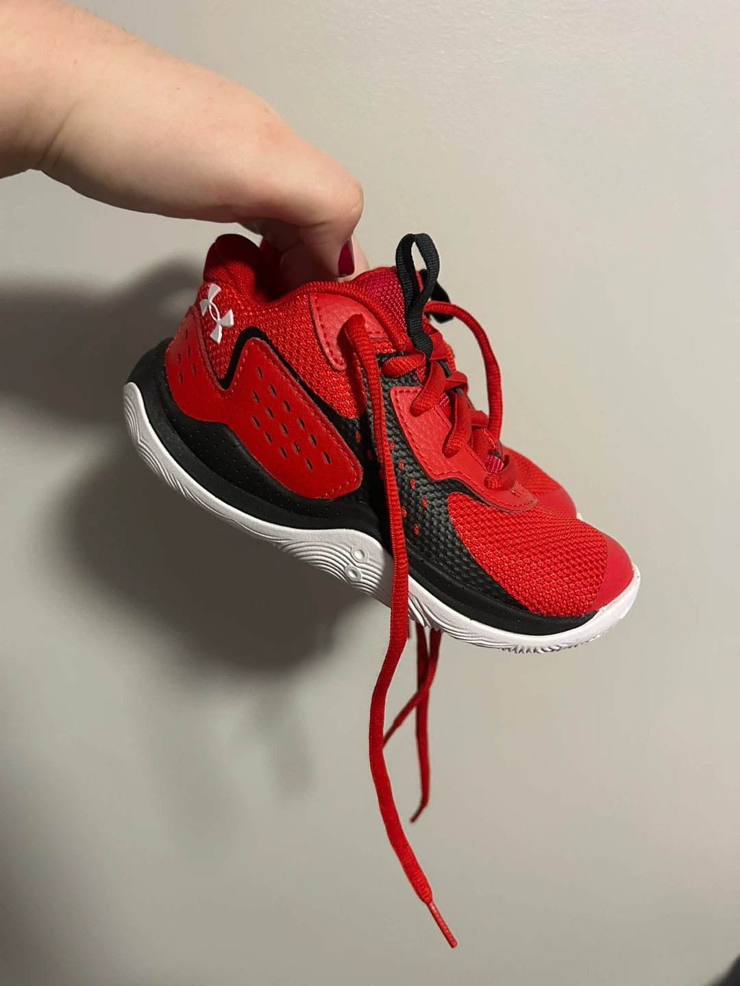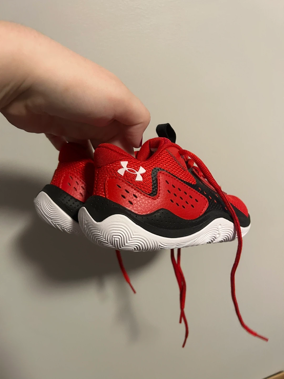 Under armour brand. Lace up athletic runners. Black & red in colour. Size 11C. Brand new condition