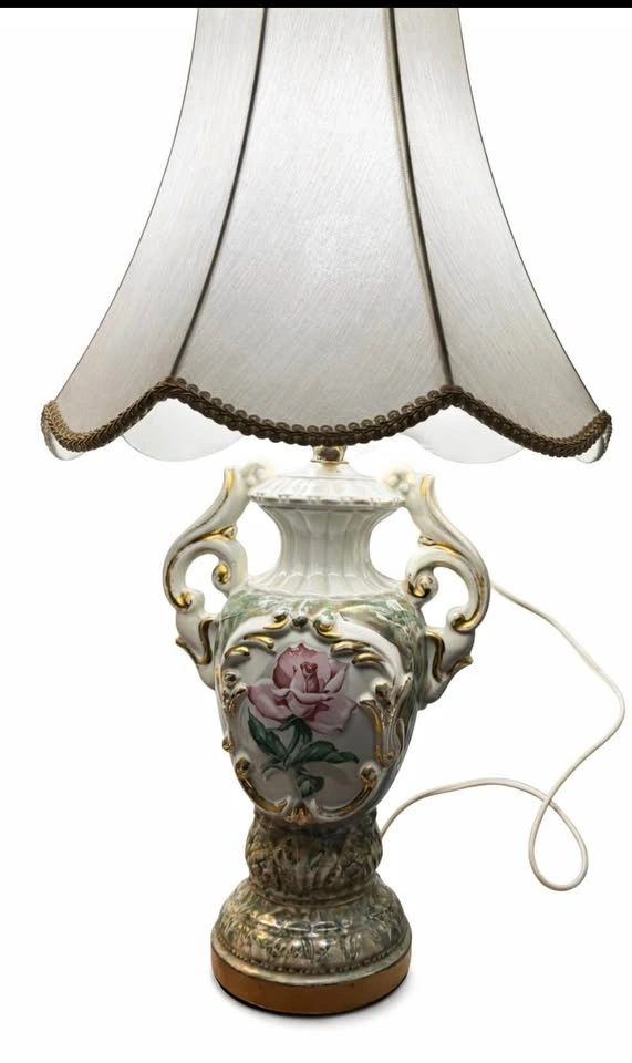 Vintage Capodimonte Art Deco urn style porcelain table lamp with hand painted pink rose motif and gilded accents. Updated cord. Pick up in Keswick. Willing to deliver anywhere in Georgina, Newmarket and Aurora.