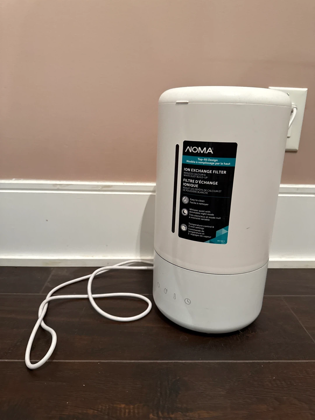 Selling a Noma Ion Exchange Filter humidifier. It's designed with a top-fill design, making it easy to refill. It also features temperature control and three levels of vapour intensity. It's whisper-quiet, which is great for nighttime use!