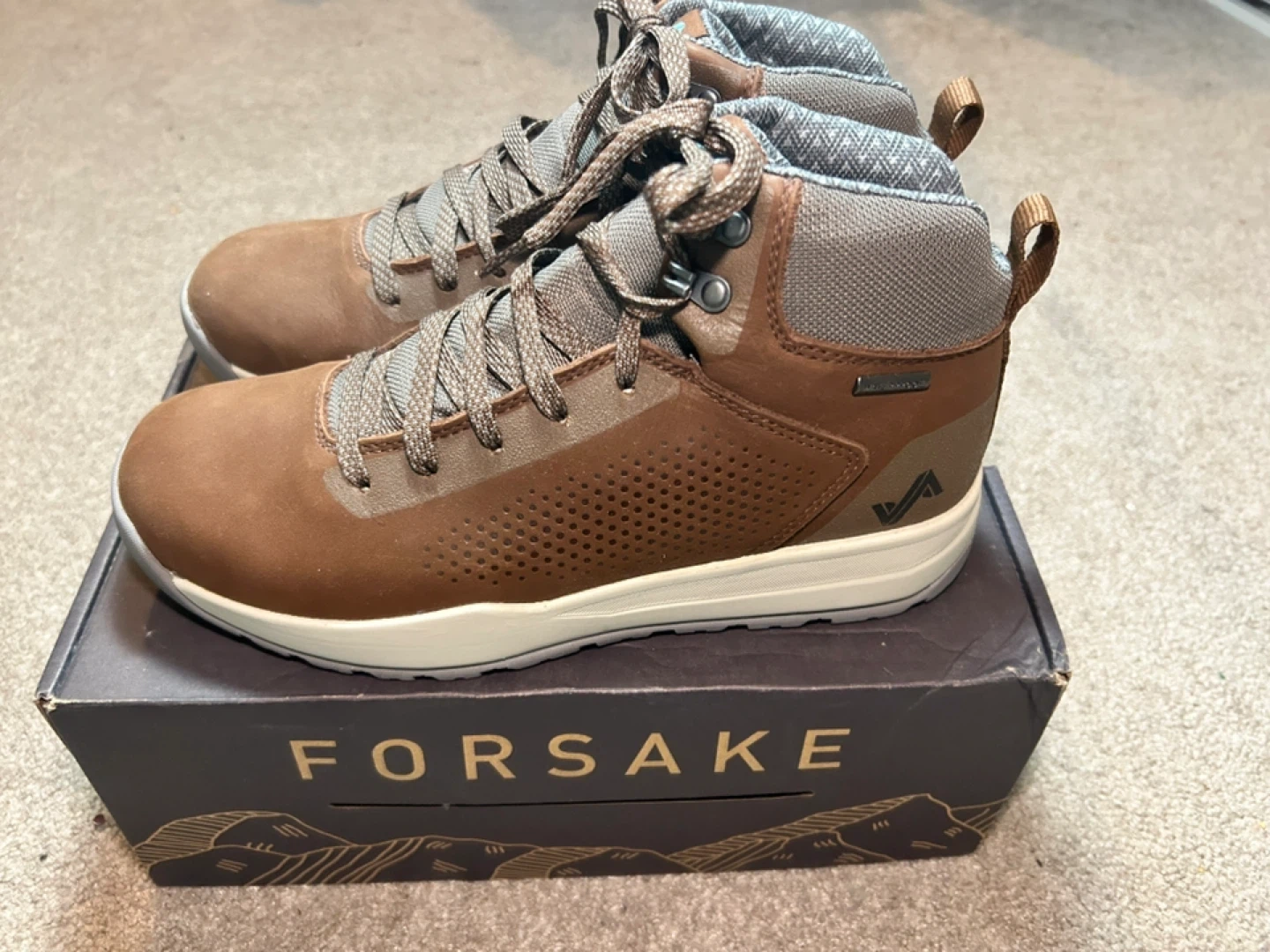 Selling a pair of Forsake Cascade hiking boots in brown. These boots are great for hiking and other outdoor activities.