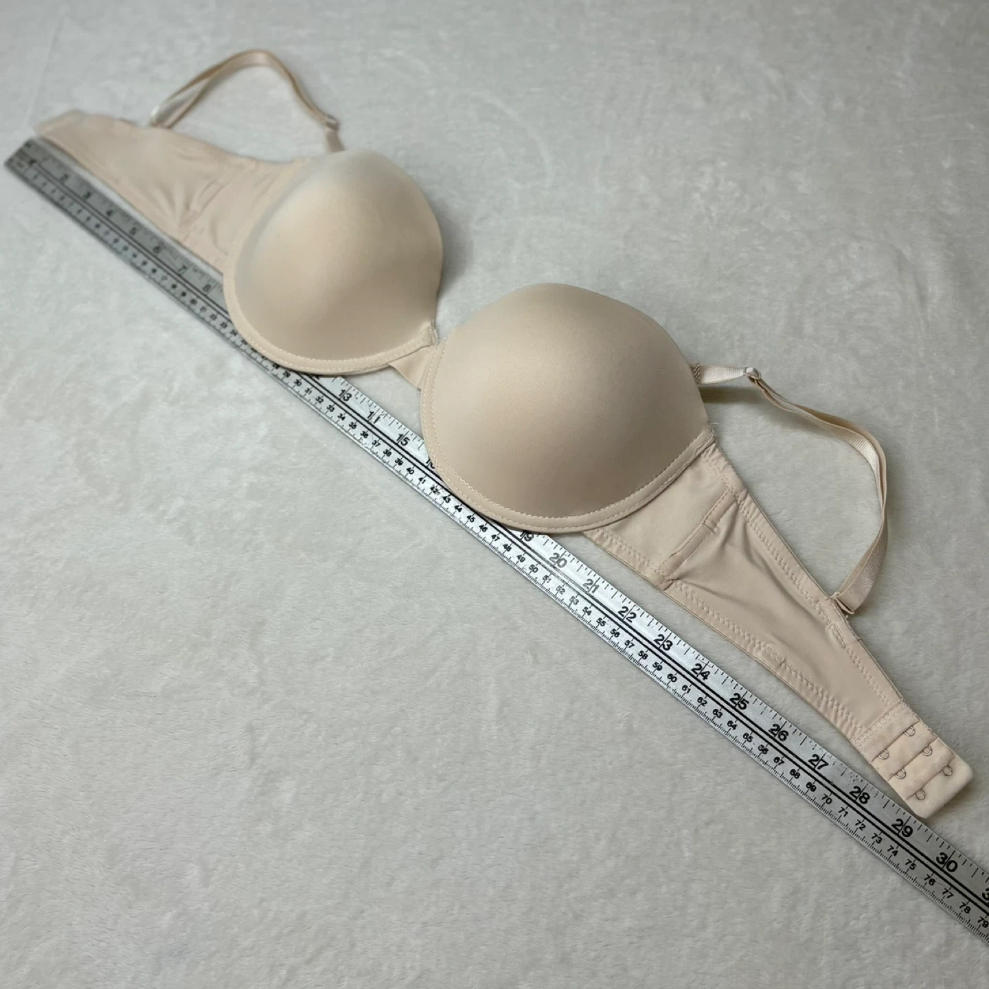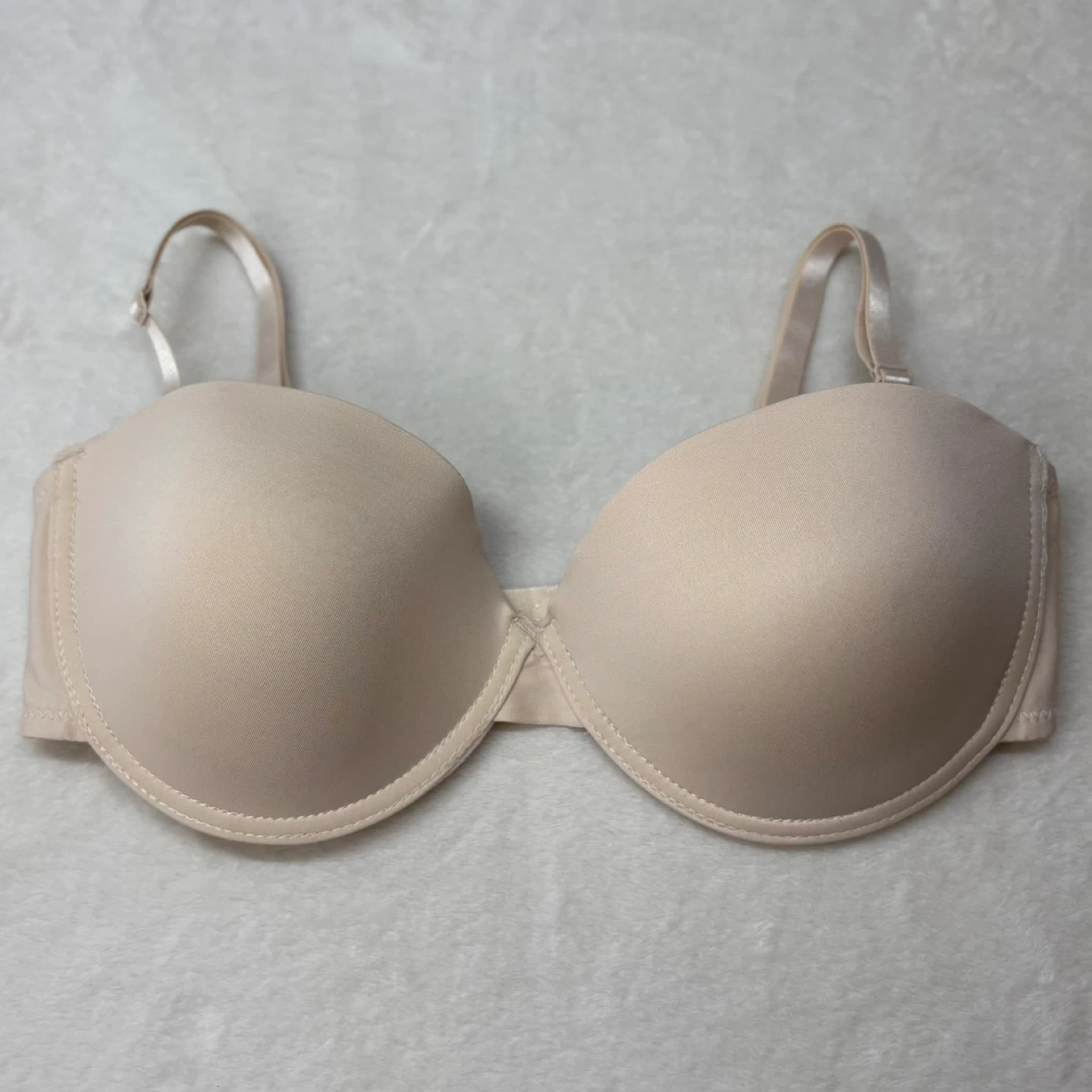 Understated and versatile, this beige convertible bra offers a seamless look under clothing with supportive underwire and smooth cups.