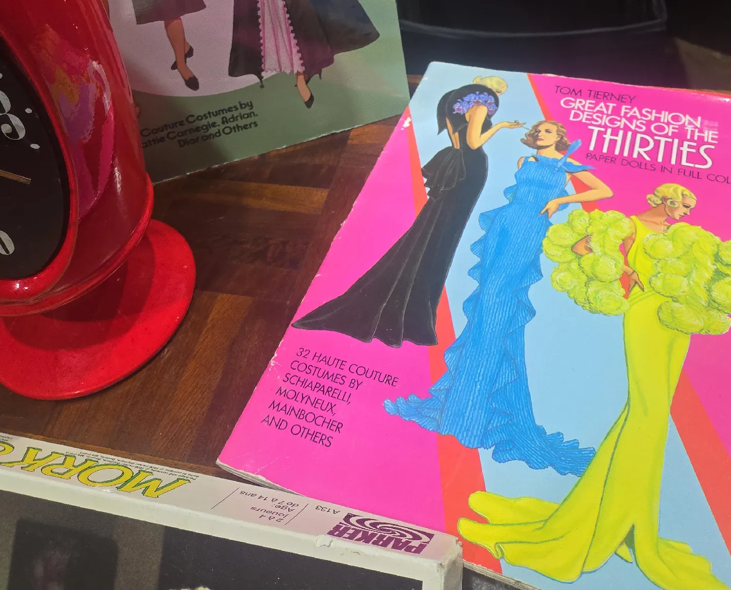 Selling a copy of "Great Fashion Designs of the Thirties" by Tom Tierney! This paper doll book features 32 haute couture costumes by designers like Schiaparelli, Molyneux, Mainbocher, and others. A fun collection for fashion enthusiasts