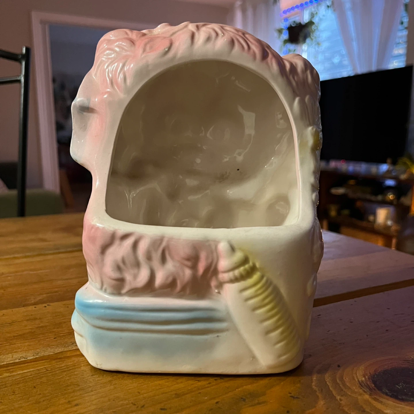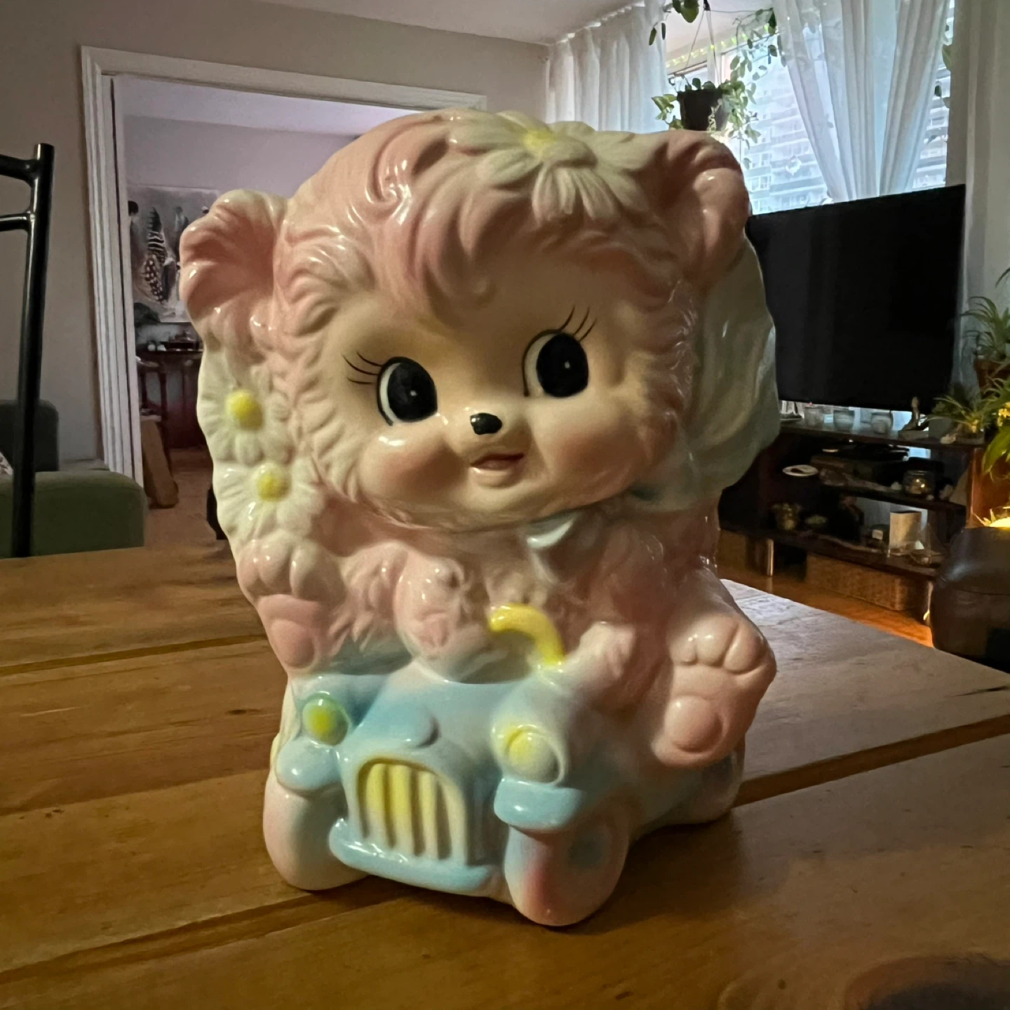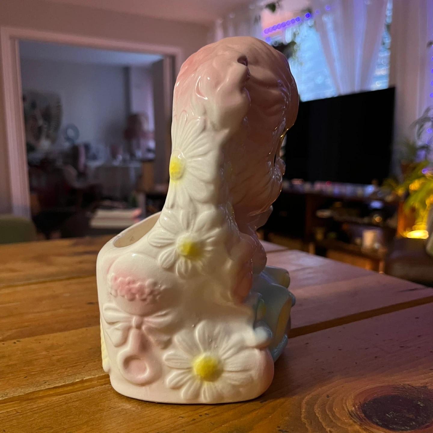 Charming and hard-to-find vintage Relpo ceramic planter dating to 1961, featuring that unmistakable mid-century kitschy style collectors love. This piece has wonderful character and nostalgic appeal, making it perfect for vintage décor lovers, plant enthusiasts, or Relpo collectors.