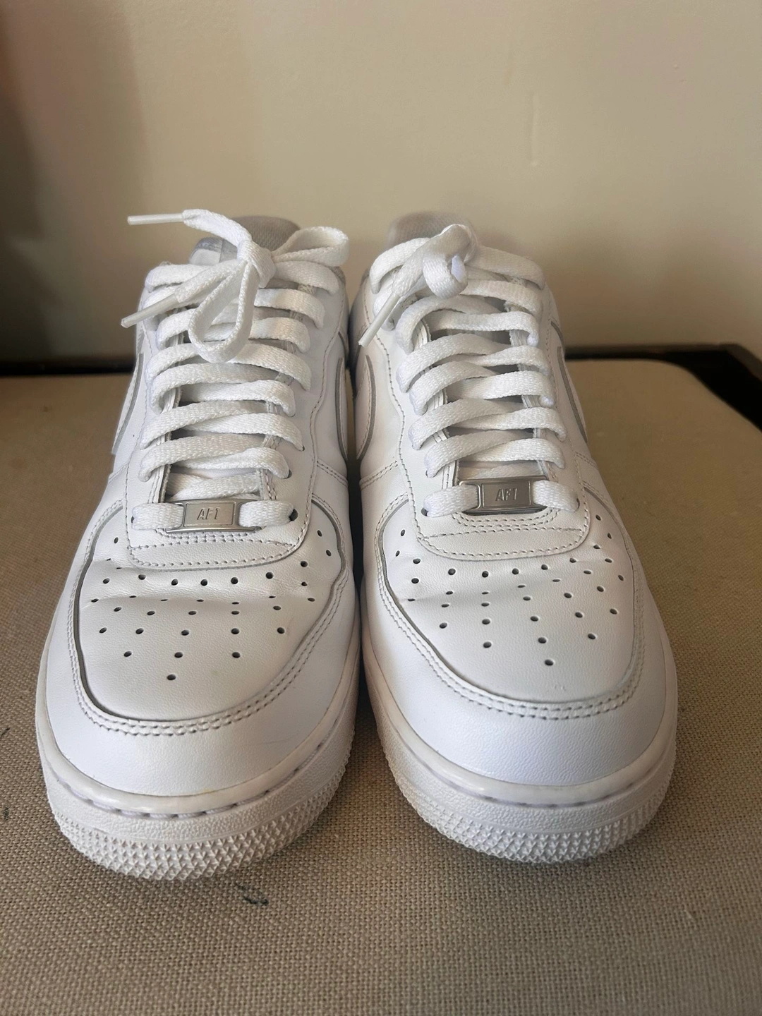 White Air Forces, Size 9. Condition is 9/10, very clean. Asking $50 OBO, picked up. Located in Cicero. Willing to consider trades for Pokemon sealed or singles.