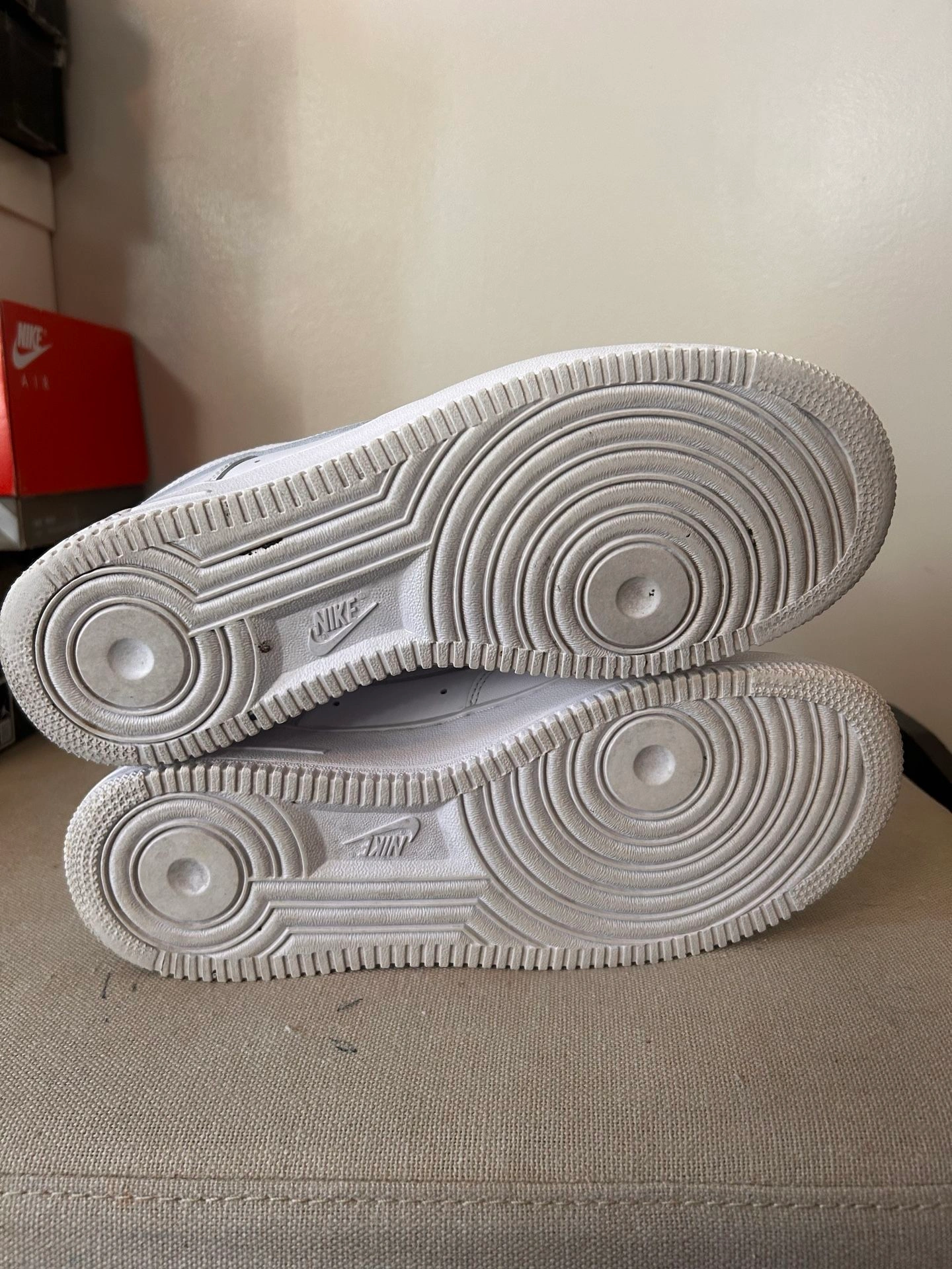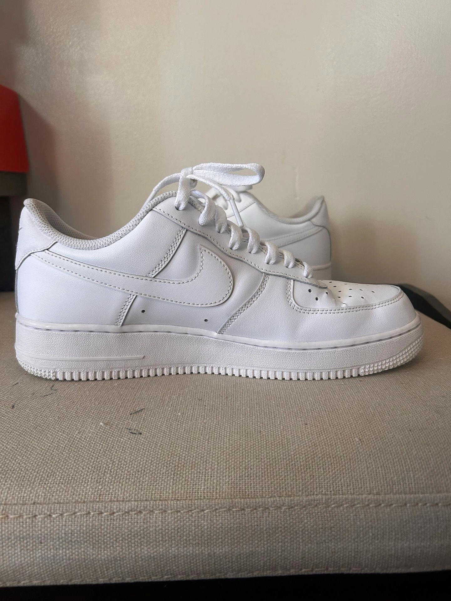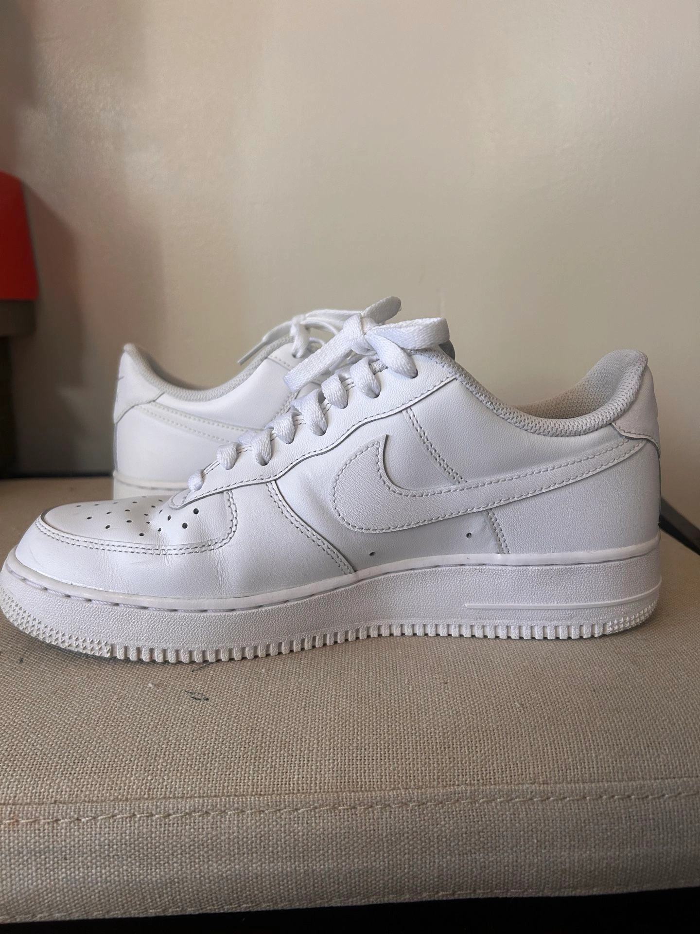White Air Forces, Size 9. Condition is 9/10, very clean. Asking $50 OBO, picked up. Located in Cicero. Willing to consider trades for Pokemon sealed or singles.