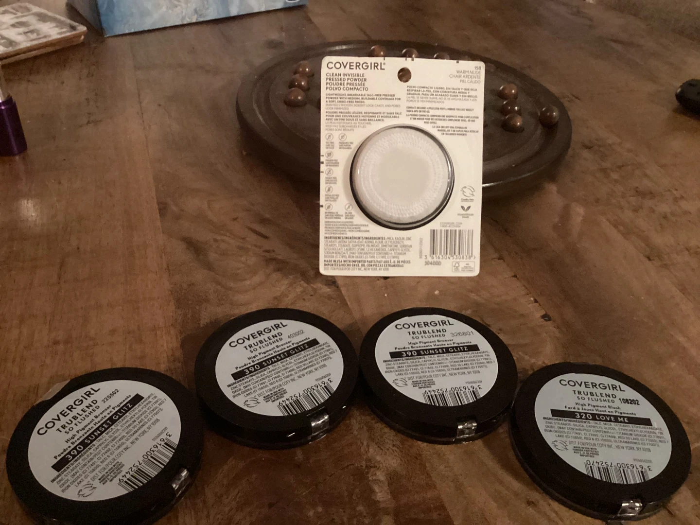 Four Covergirl TruBlend So Blushed high pigment blush compacts and one Covergirl Clean Pressed Powder. Shades include 390 Sunset Glitz and 320 Love Me. Pressed powder is in shade 105 - translucent. Great for a quick touch-up! Selling for $4 each. Great addition to anyone’s makeup collection.