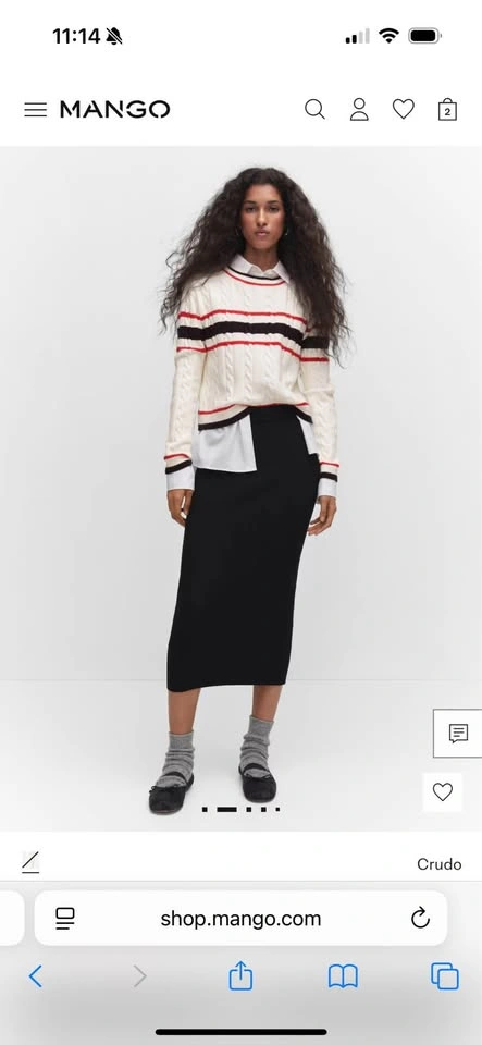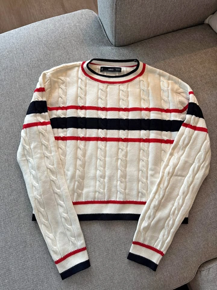 Brand-new Mango sweater (no tags), never worn. Size XS, but it has a slightly relaxed fit so it can also work for size S. Features a classic cable-knit texture with navy and red stripes. Super cute, and easy to style. The knit is soft and comfortable, perfect for layering in cooler weather.