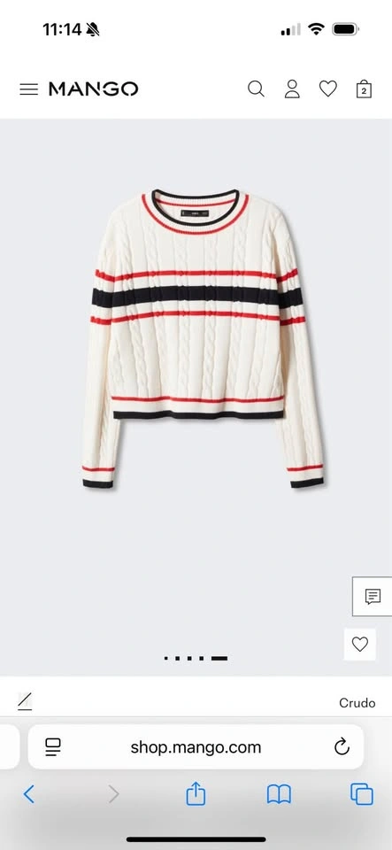 Brand-new Mango sweater (no tags), never worn. Size XS, but it has a slightly relaxed fit so it can also work for size S. Features a classic cable-knit texture with navy and red stripes. Super cute, and easy to style. The knit is soft and comfortable, perfect for layering in cooler weather.