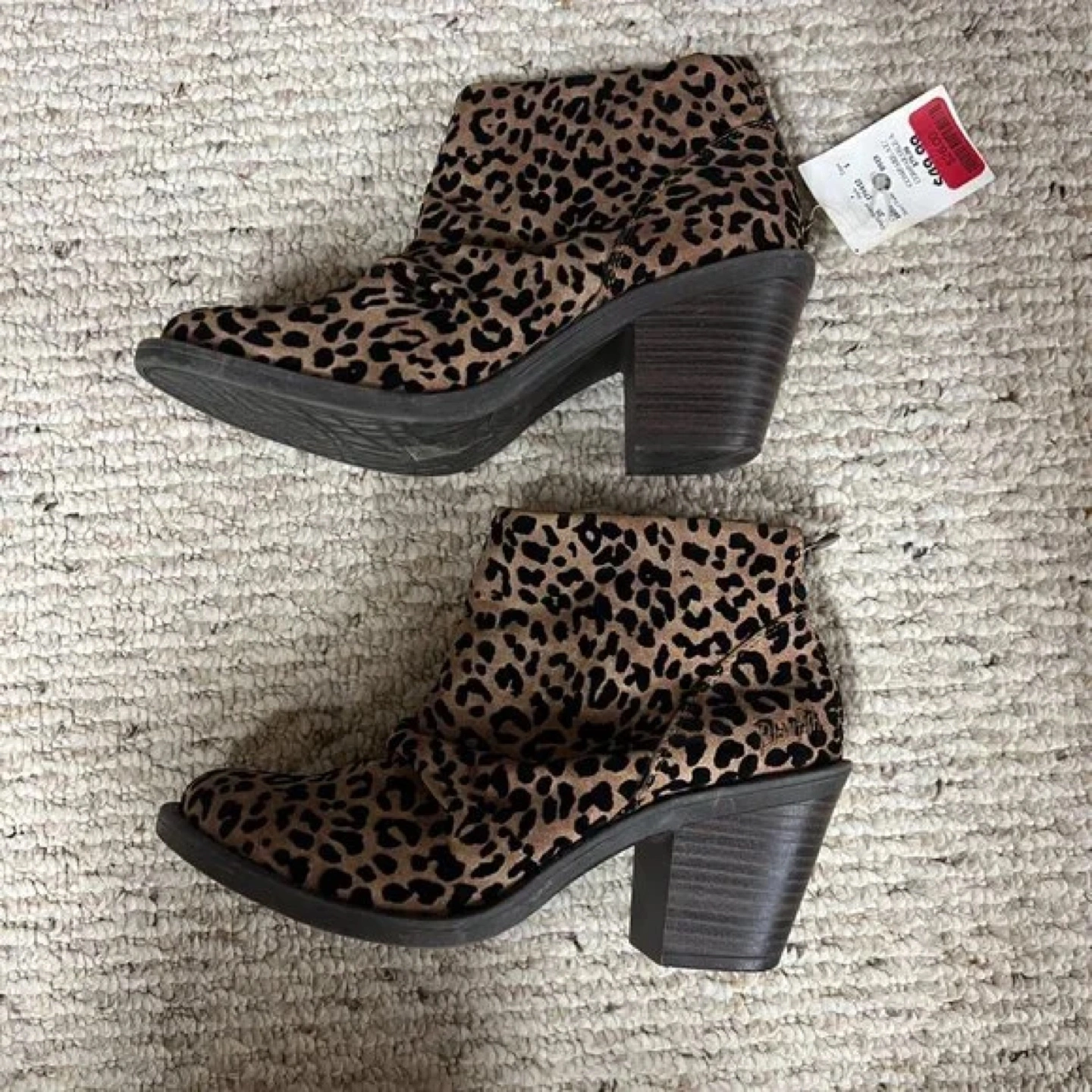 Pair of women's ankle boots. Leopard print design. Low block heel. Size 7 1/2. New with tags.