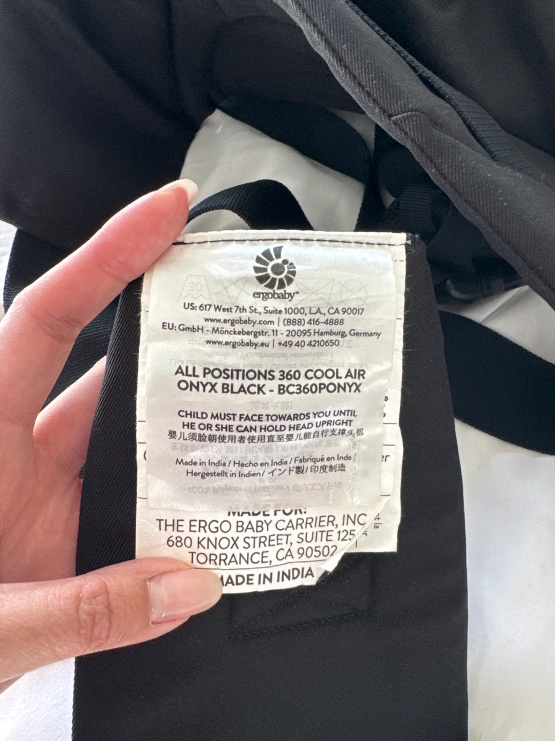 Used only 3-4 times. Selling Ergobaby carrier in black. It's in nearly perfect condition and ready for a new little one! This carrier is comfortable and supportive for both you and your baby. Retail price: $179