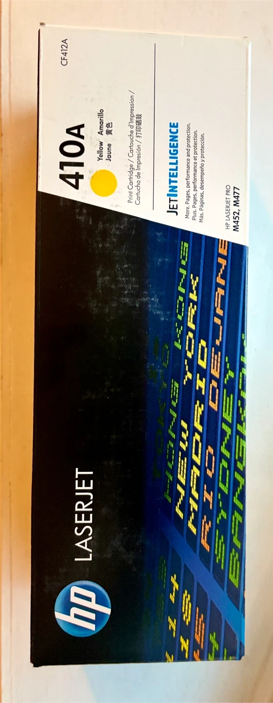 This is a new unused and unopened HP 410A yellow toner cartridge. It's designed for HP LaserJet Pro M452 and M477 printers. Get more pages, performance and protection!