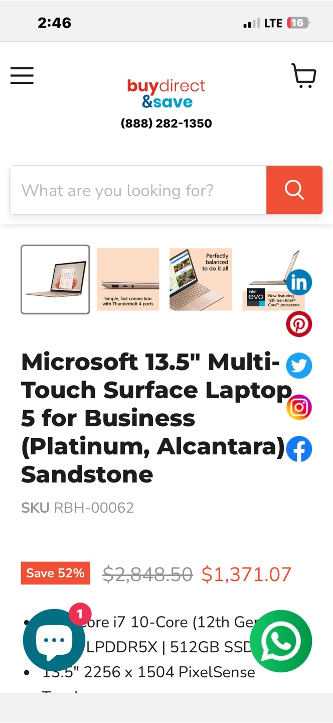 Selling a Microsoft 13.5" Multi-Touch Surface Laptop 5 for Business in Sandstone. It features a Core i7 10-Core (12th Gen) processor, LPDDR5X, and a 512GB SSD. The display is a 13.5" 2256 x 1504 PixelSense display. Originally listed for $2,848.50, it's now available for $1,371.07