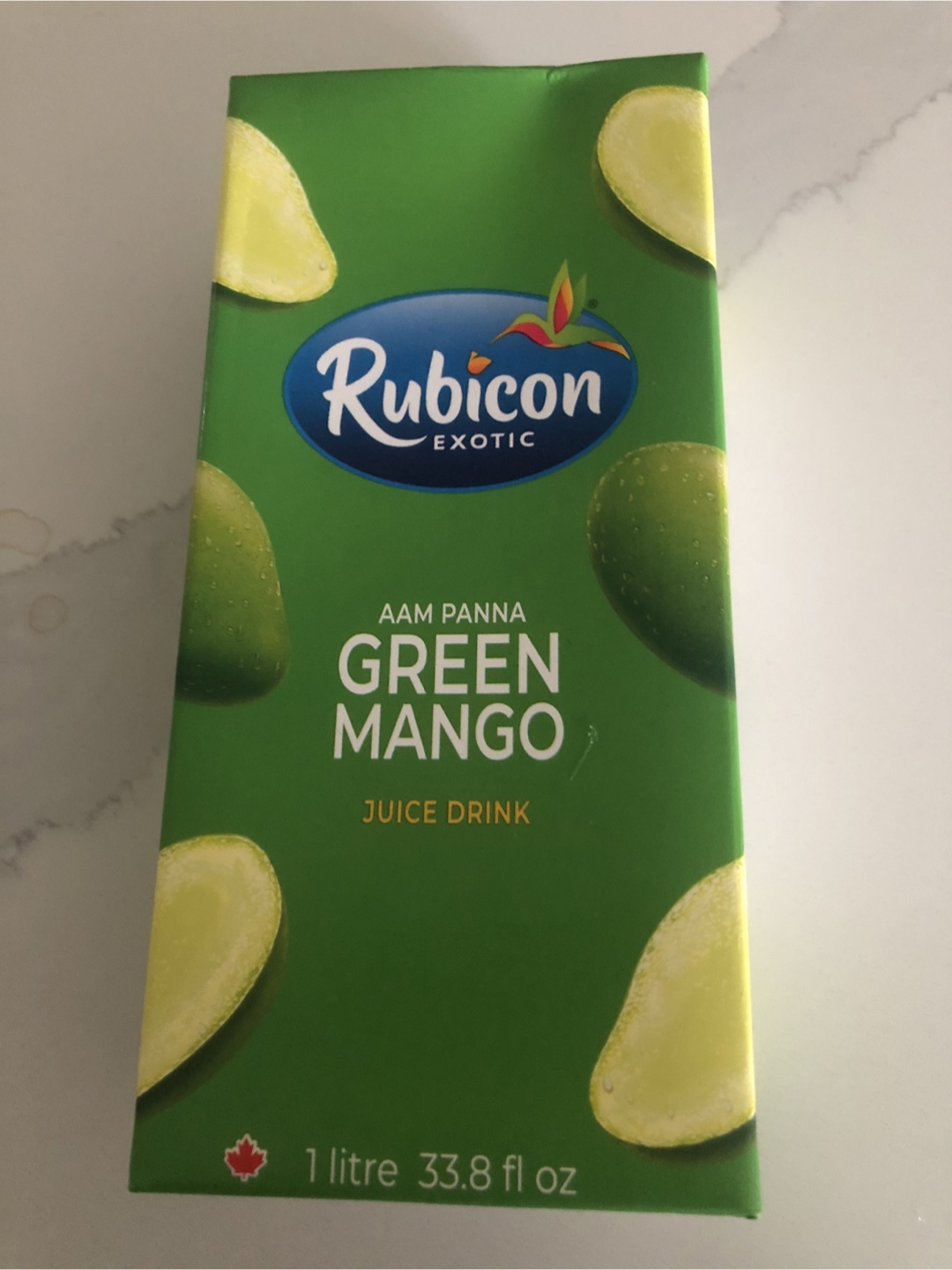 Rubicon Green Mango Juice This juice drink comes in a 1 litre (33.8 fl oz) container. Best before 2026 October 24 My husband bought two boxes of these and we tried one, but hated it. It has a very weird smell and taste and it wasn’t for us. The other box has never been opened. Free for anyone who wants it.