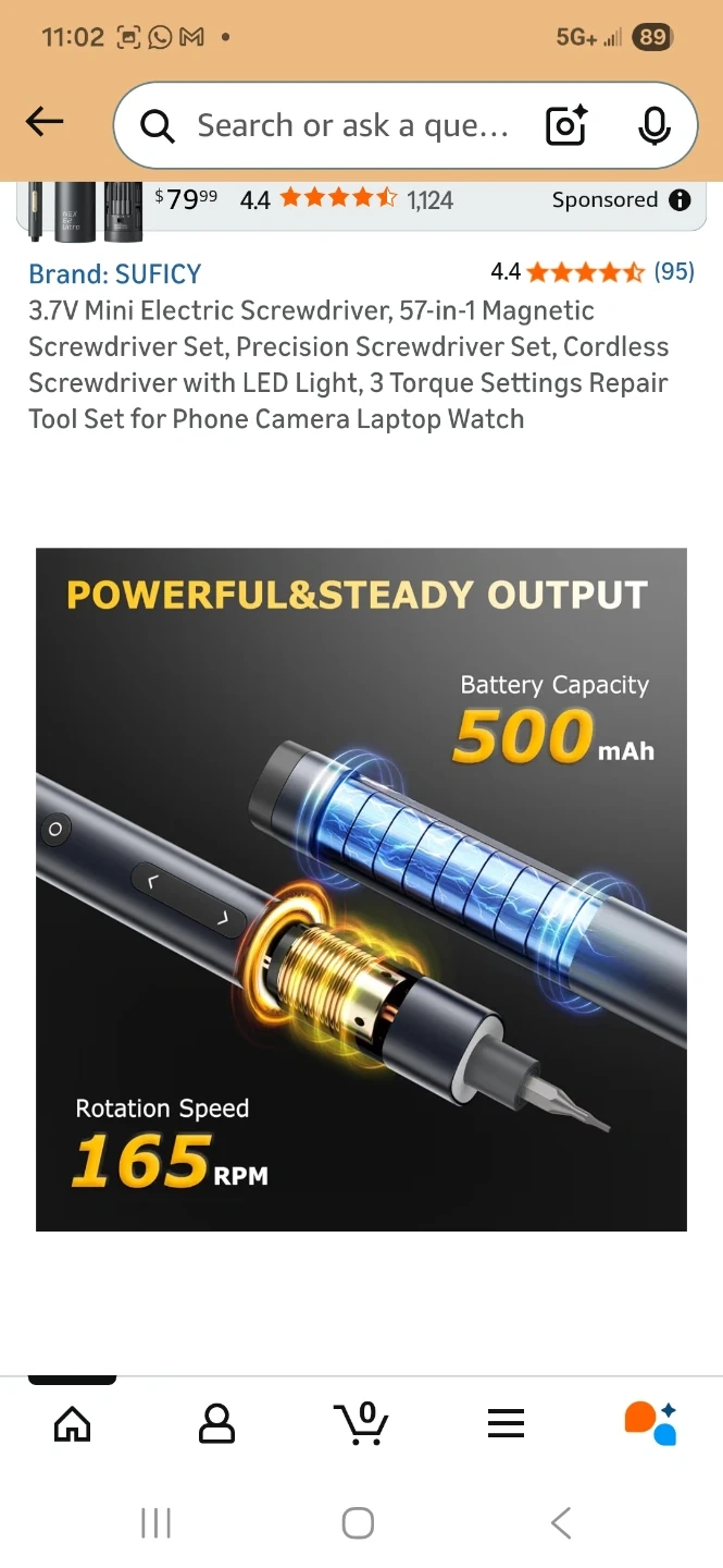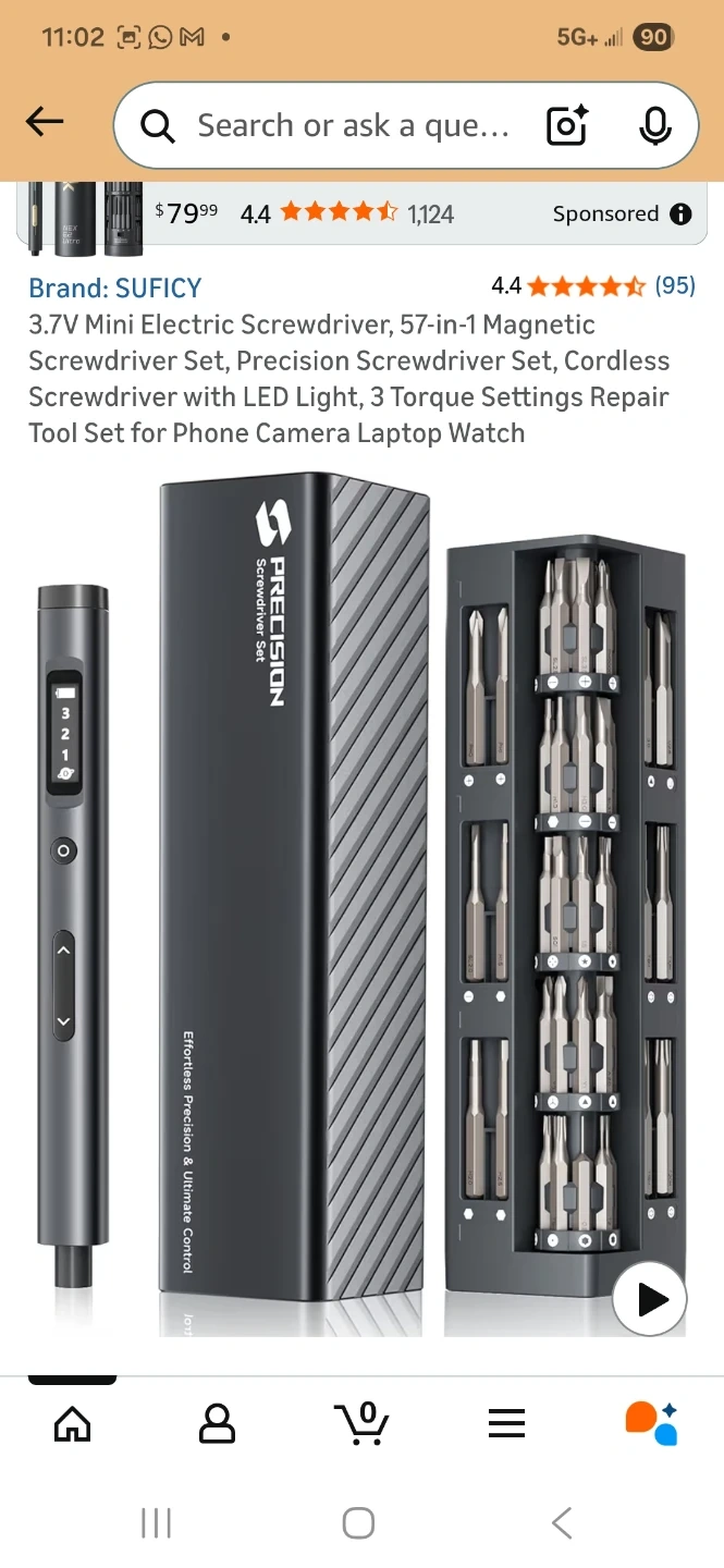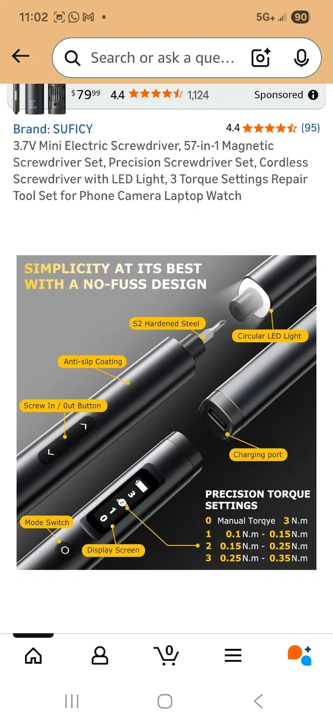 Sealed, new. This is a SUFICY 3.7V mini electric screwdriver set. It includes 57 magnetic bits and has an LED light. Features 3 torque settings and a charging port.