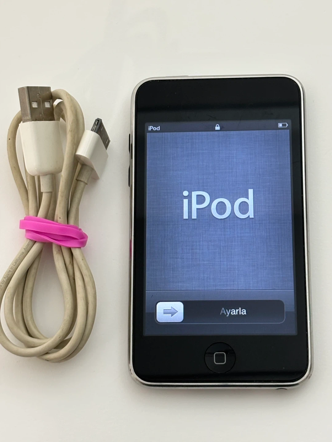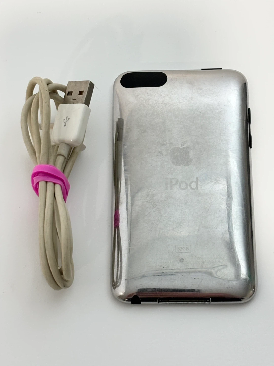 Apple iPod Touch 3rd generation with 32GB of storage , model A1318 . It includes the charging cable. This iPod is silver.