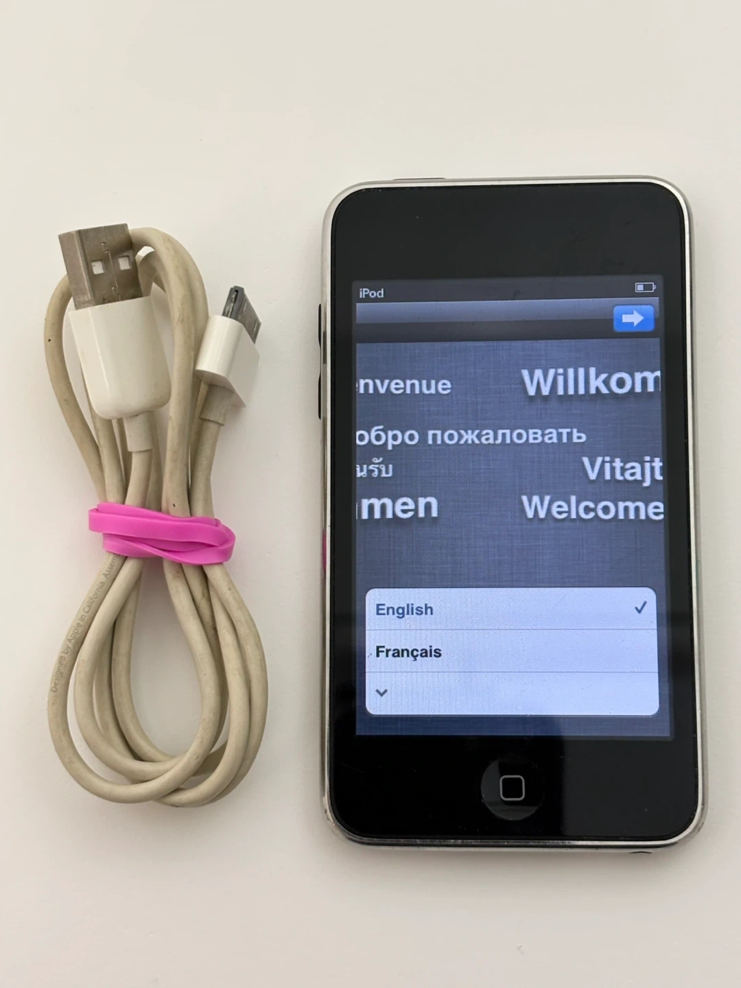 Apple iPod Touch 3rd generation with 32GB of storage , model A1318 . It includes the charging cable. This iPod is silver.