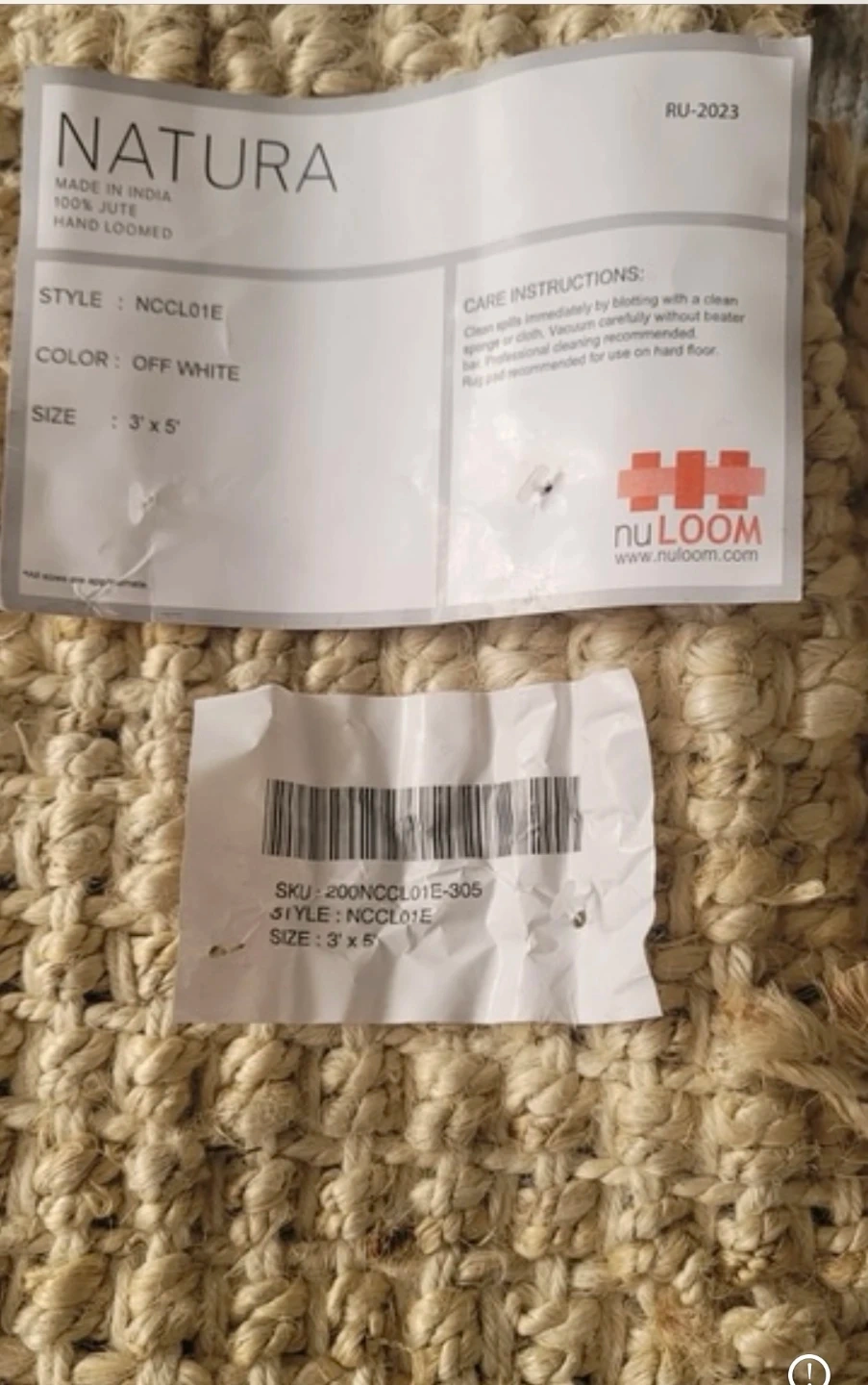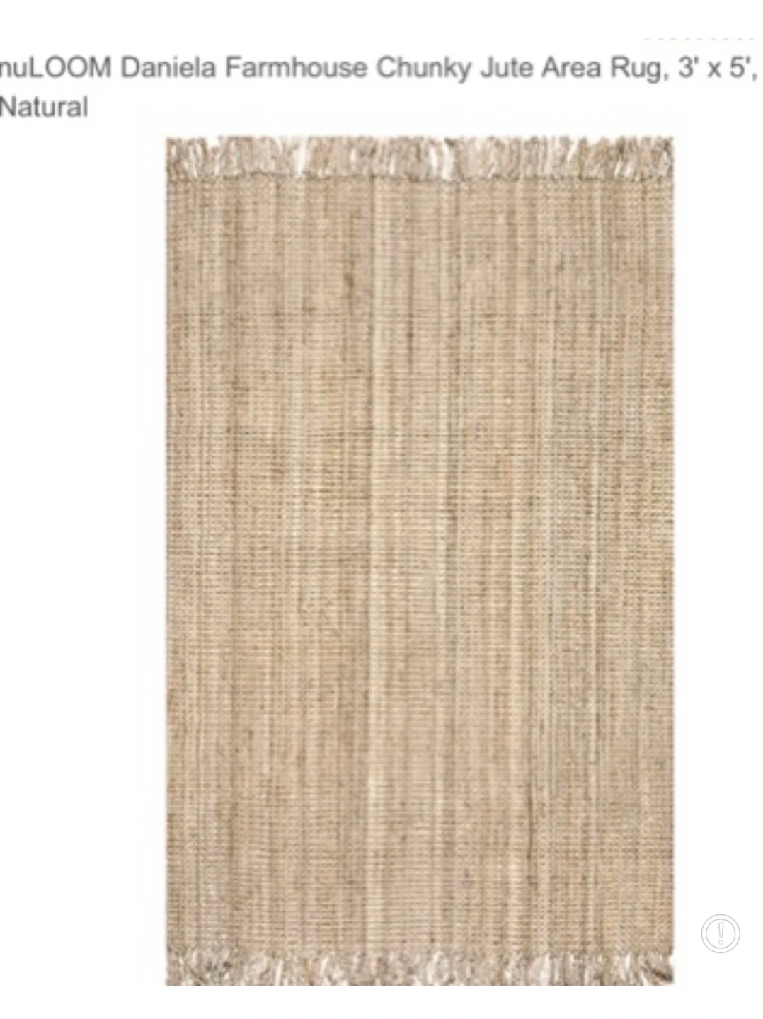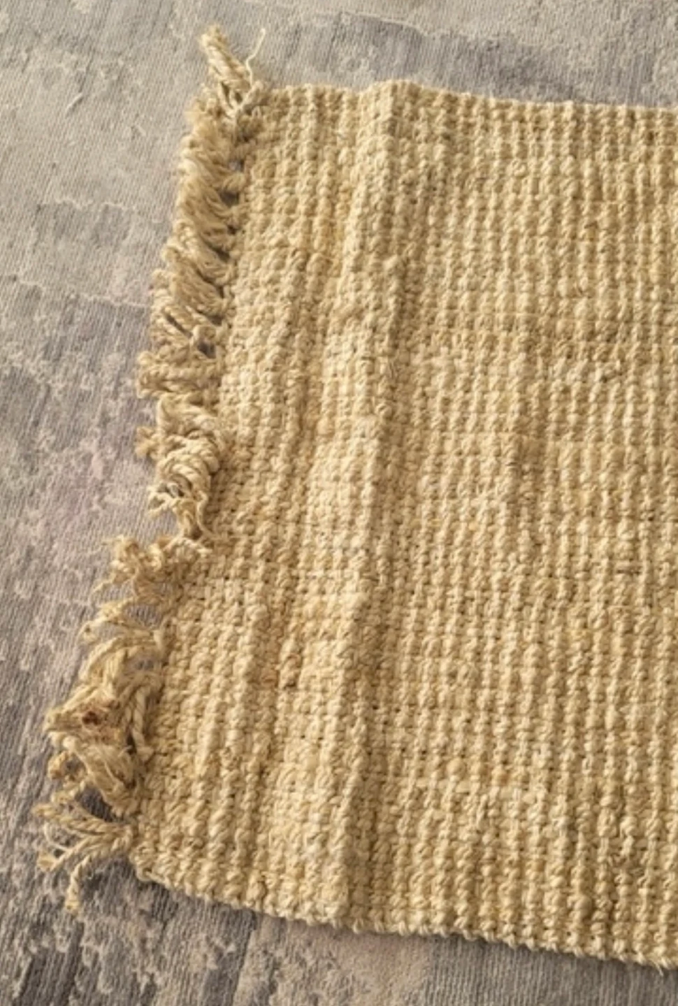 This nuLOOM rug is made from 100% jute. It's a natural colour and measures 3 feet by 5 feet. It features a chunky weave and fringe detailing.