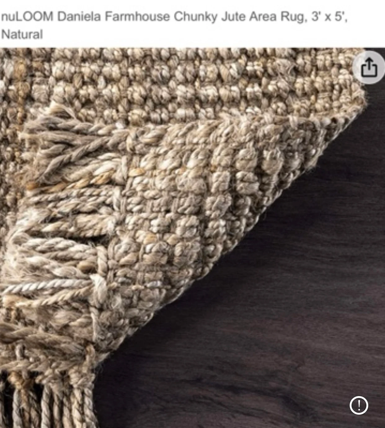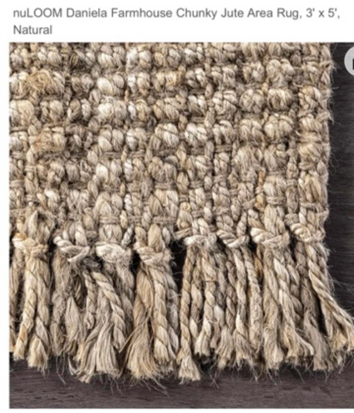 This nuLOOM rug is made from 100% jute. It's a natural colour and measures 3 feet by 5 feet. It features a chunky weave and fringe detailing.