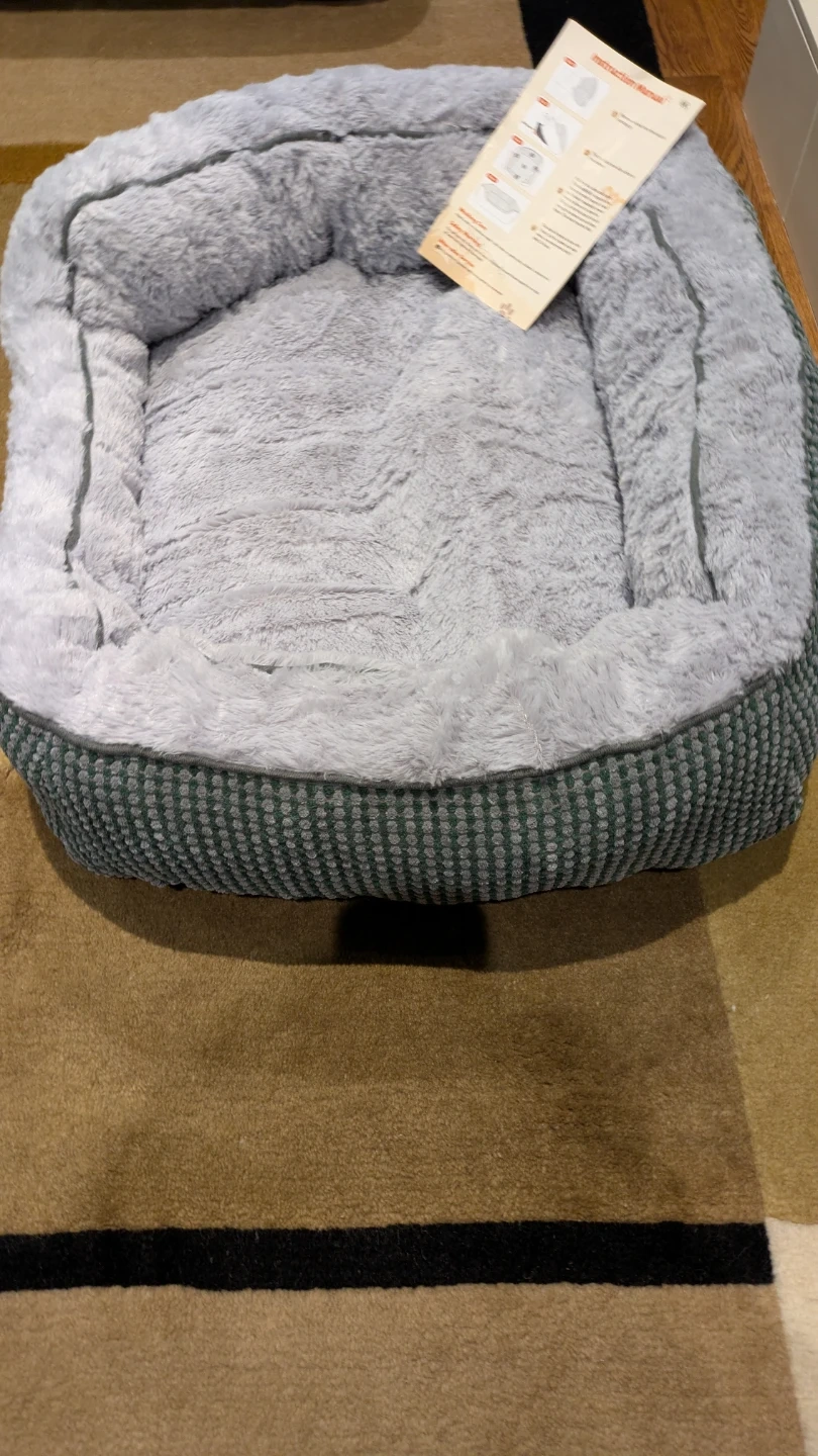 Ultra soft fur for superior warmth and comfort. 25"x21"x8". Raised walls provide good support and cushion for the dog's head and neck and creates a sense of security. Orthopedic support for joint health. Offers exceptional cushioning to alleviate pressure points. The lower entrance design offers easy access for small dogs and older dogs. Anti-slip bottom. Machine washable.