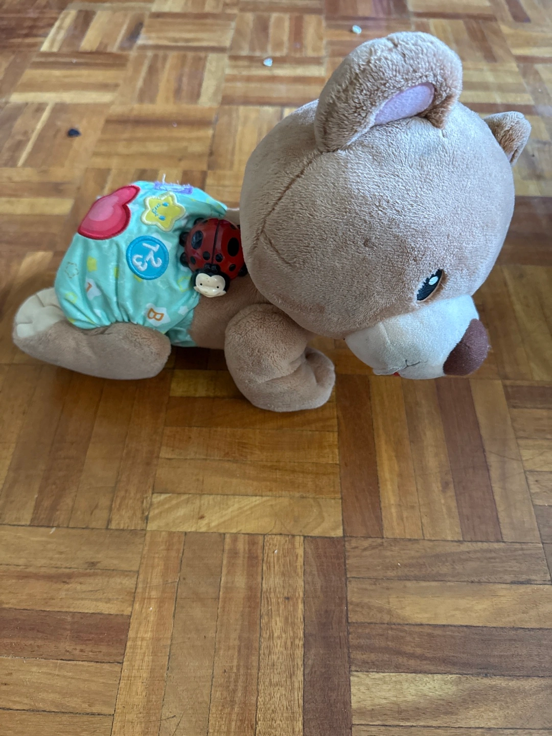 Here’s a cute VTech Crawl Along Bear that’s ready for a new home! This cuddly bear encourages your little one to crawl with its fun sounds and interactive features. It’s in great condition and ready to bring joy to a new family