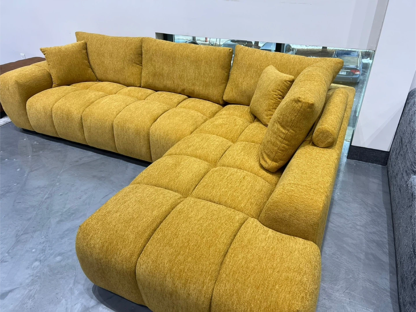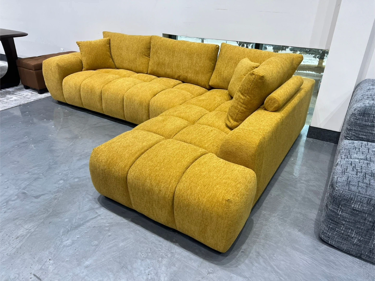 Looking to add a touch of modern comfort to your living space? This modular sectional sofa could be exactly what you need! It features a unique, eye-catching design with its quilted sections and plush cushions. Perfect for lounging and entertaining, this sofa is sure to become the centrepiece of your home. The neutral colour makes it easy to match with any decor!