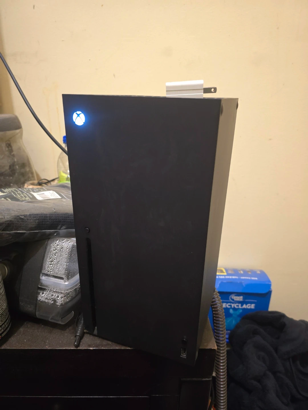 This is an Xbox Series X console, ready for gaming! It's a powerful machine for all your entertainment needs. Includes the console and necessary cables. Get ready to experience next-gen gaming!