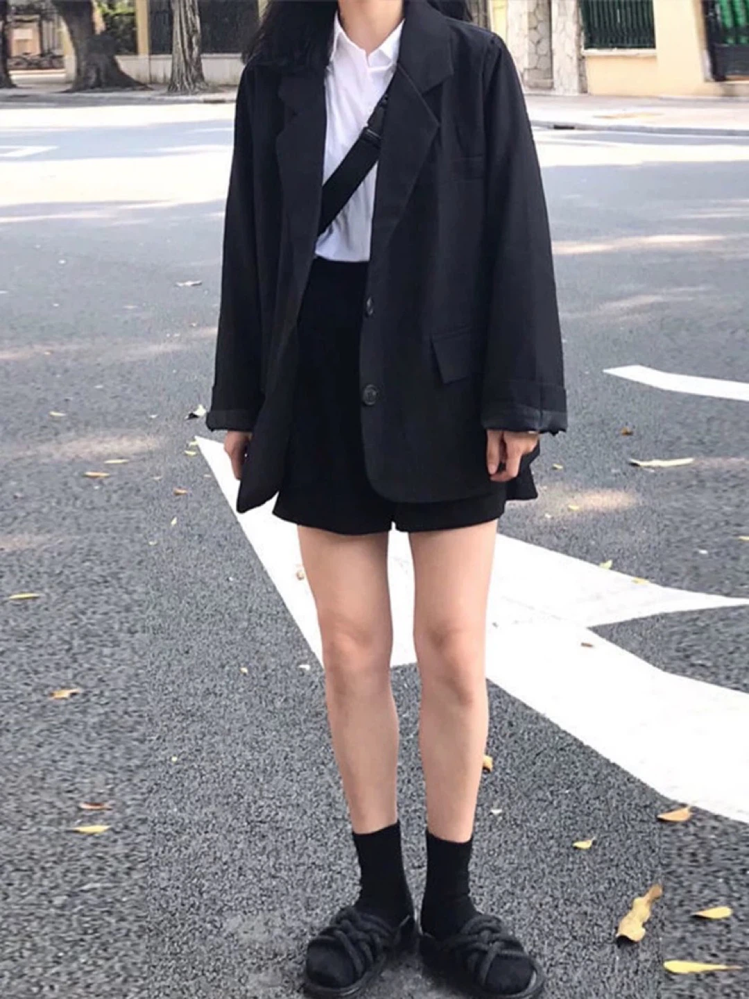 Selling a classic black blazer! It's in great condition and ready to elevate your wardrobe. The size isn't marked, so please check the photos to see if it's the right fit for you. Perfect for layering or wearing on its own