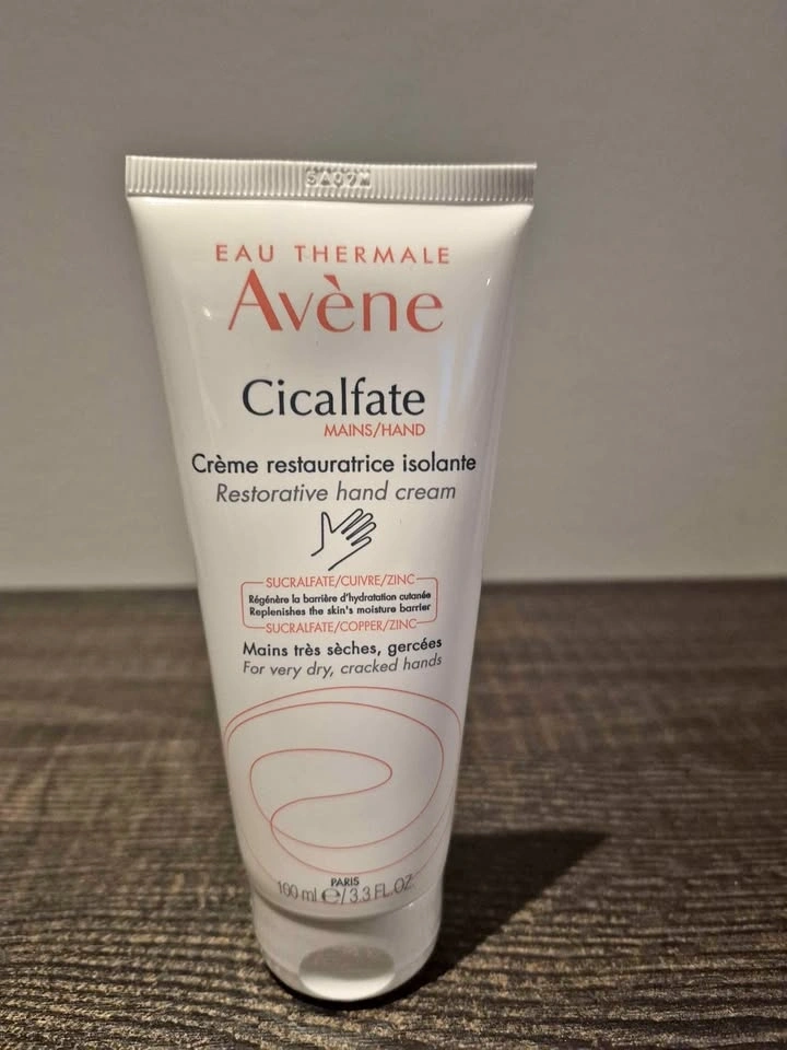 Brand new Avène Cicalfate restorative hand cream. This is a 100 ml tube. Great for very dry, cracked hands. Helps replenish skin's moisture barrier. Has sucralfate, copper, and zinc.