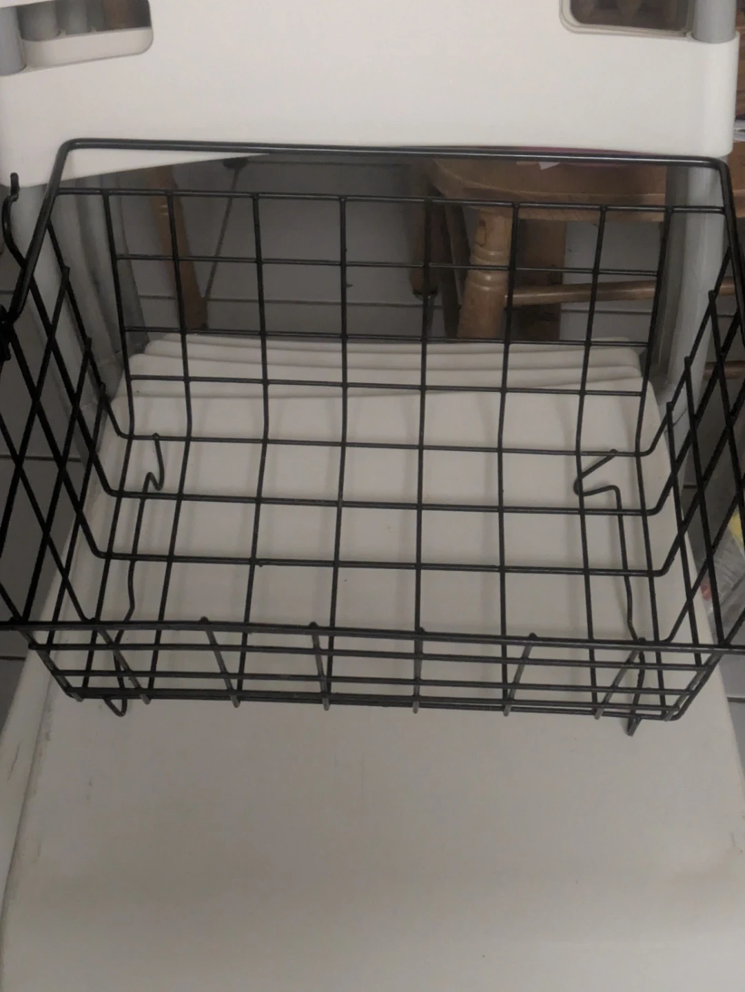 Selling a black wire basket. It's in great shape and ready to help you organize your space!
