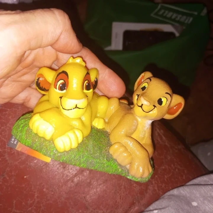 This is a Disney The Lion King themed aquarium ornament featuring Simba and Nala. It's designed to add a fun touch to your fish tank. Made from durable material for aquatic use.